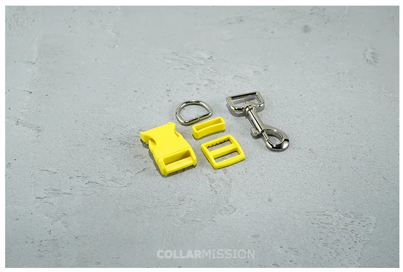 (plastic buckle+Tri-Glid+square keeper+D ring+metal dog clasp/set)Good quality 25mm yellow DIY dog tie dog leash parts