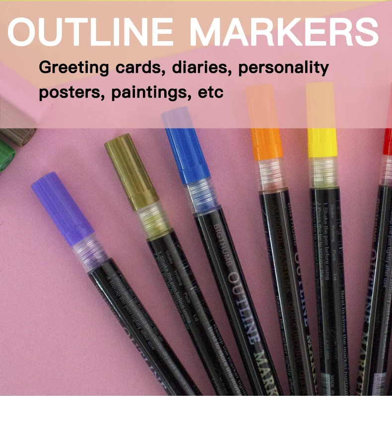 Новый 24 цвета s двойная линия контурная ручка набор металлический цвет хайлайтер магический маркер ручка для художественной живописи письма школьные принадлежности