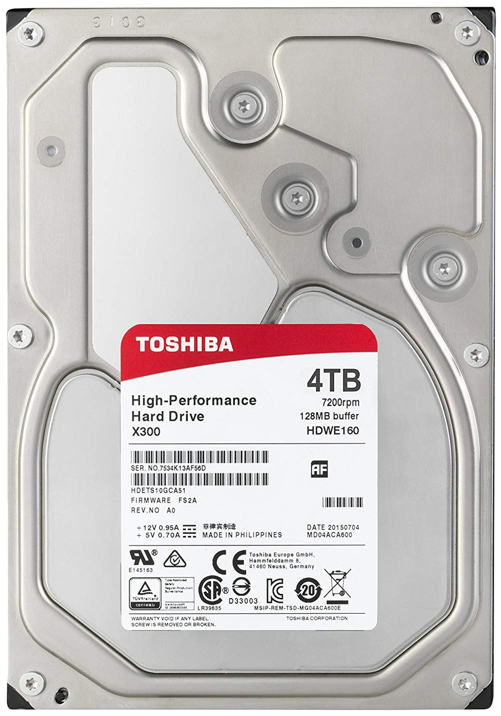 Жесткий диск 4Tb SATA-III Toshiba X300 внутренний HDD, 3.5", 4000 Гб, SATA-III, 7200 об/мин, кэш - 128 Мб (HDWE140UZSVA)