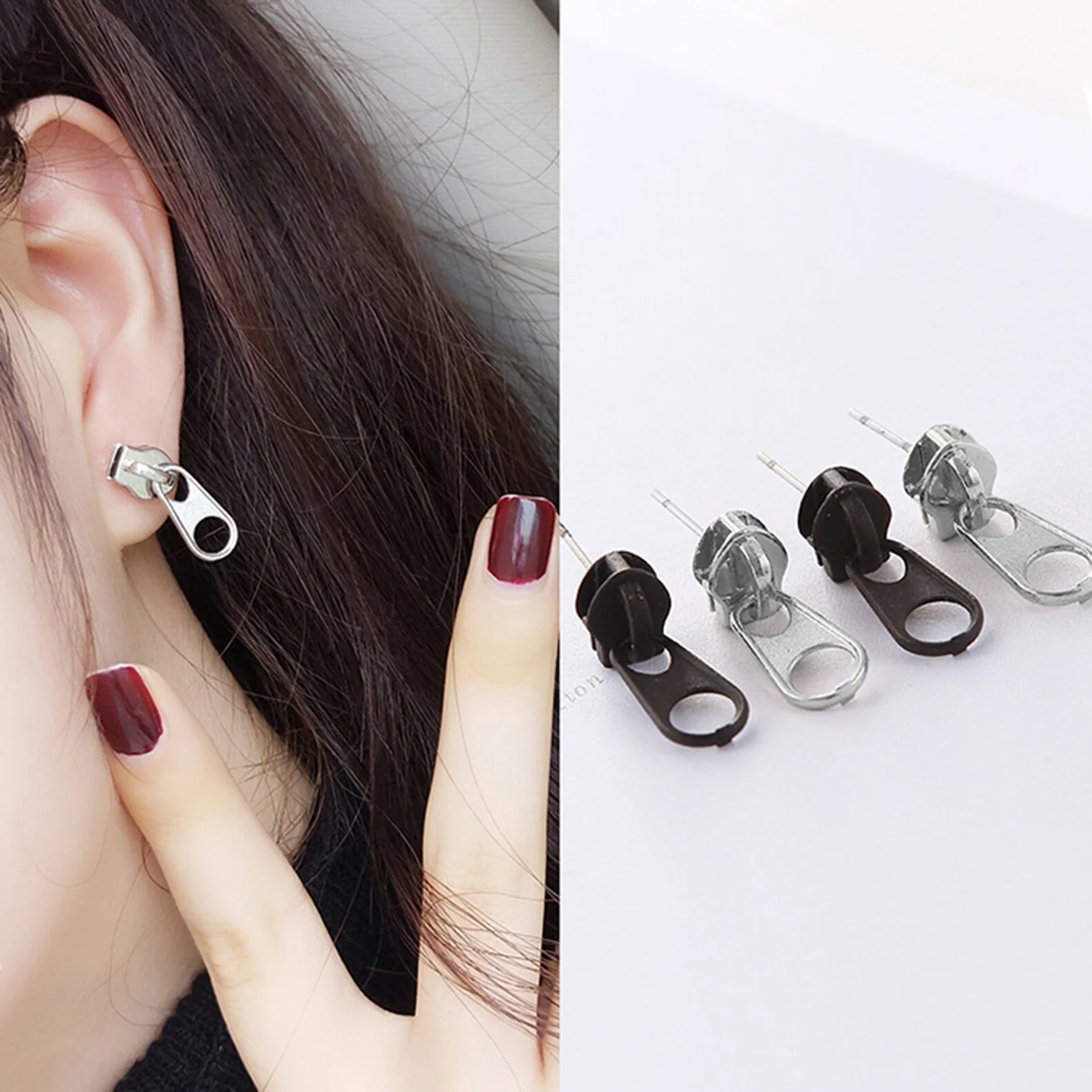 Женские серьги-гвоздики на молнии в минималистском стиле1 пара, модные ювелирные изделия, уникальные Винтажные серьги-гвоздики в форме молнии из металлического сплава в стиле панк для девушек и женщин