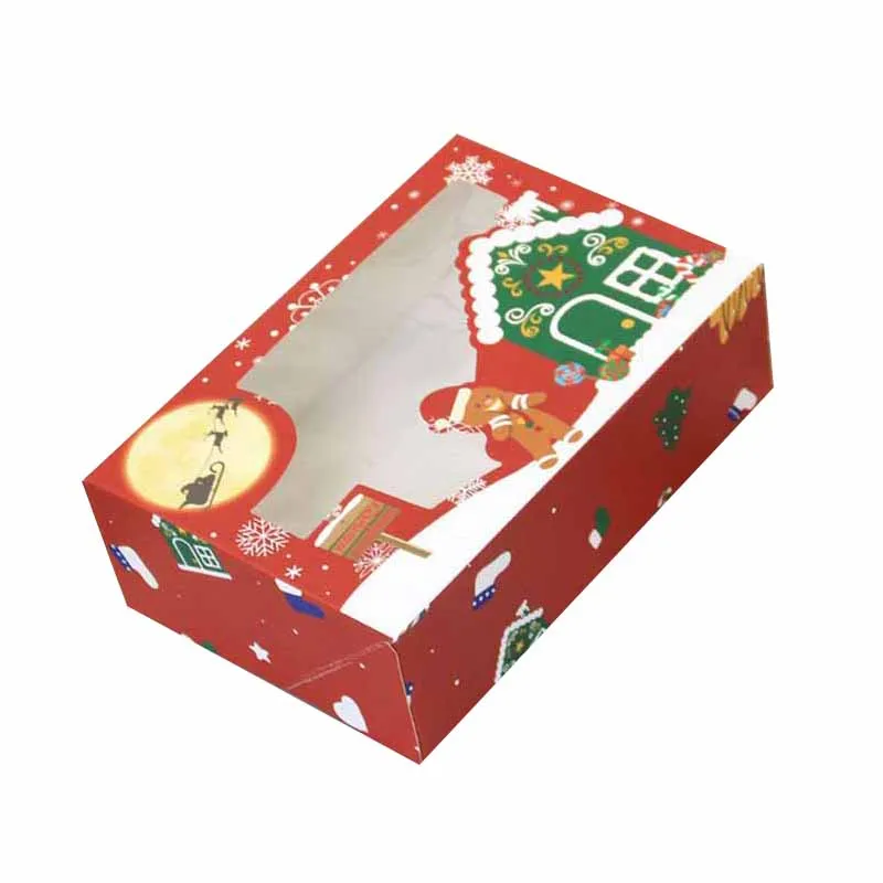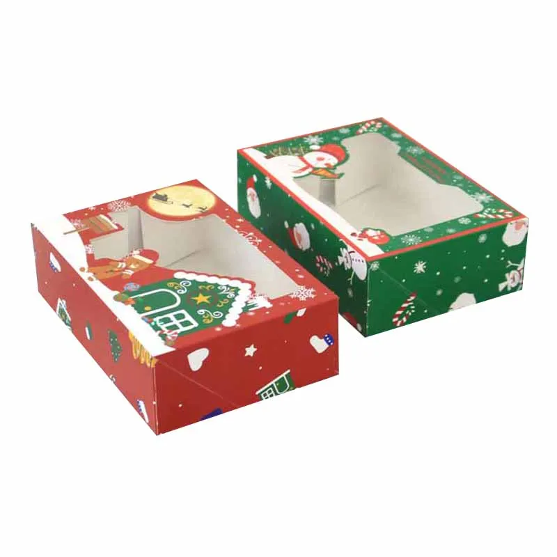 Коробка для конфет из крафт-бумаги, 4/8/12 шт., прозрачное окно из ПВХ вечерние, новогодний, Рождественский Декор, Подарочная коробка печенье выпечка, упаковочный пакет