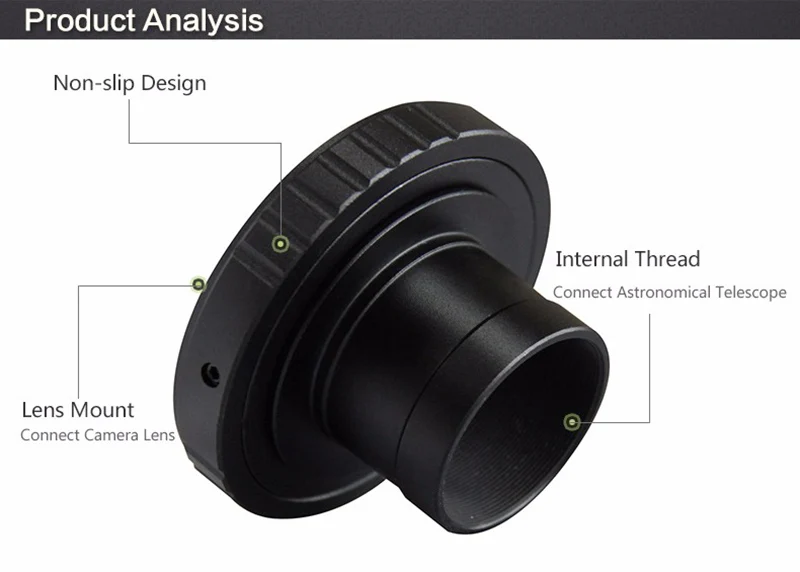 1. Позволяет монтировать для цифровых фотоаппаратов с защитой от краж на 1,25 дюйма диаметр окуляра телескоп.