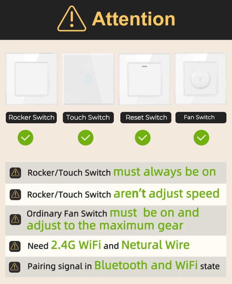 5. Нейтральный провод требуется в ваших коробках переключателей, чтобы работать правильно; Поддерживает только сеть 2,4 ГГц; Обеспечивает более легкое сопряжение через Wi-Fi и Bluetooth-подключение.