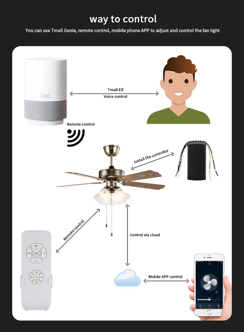 【 Голосовое управление 】поддержка голосовых ассистентов, таких как Alexa, Google Home и т. д., для реализации таких функций, как переключатели и регулировка скорости;
