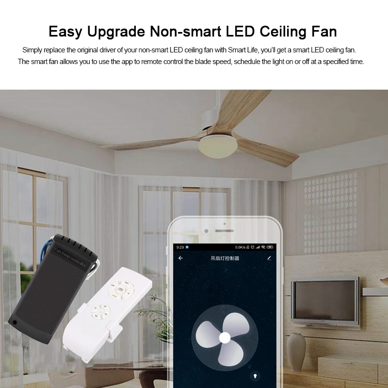 1. Светодиодный потолочный вентилятор: Просто замените оригинальный драйвер вашего неумного светодиодного потолочного вентилятора с FLC-110w/FLC-220w, вы получите умный светодиодный потолочный вентилятор. Он предназначен для потолочных вентиляторов и светильников для трехскоростных двигателей и может использоваться с потолочными вентиляторами практически для всех известных брендов.