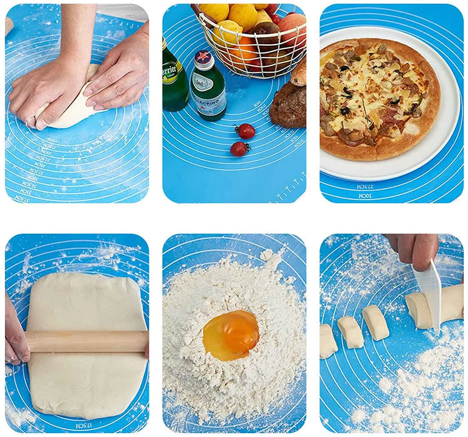 2. Многоцелевой: Этот силиконовый коврик отлично подходит для разминания, формовки и раскатывания теста, декорирования печенья, скребок для теста, теста для пиццы, макарунов, без нежелательной липкости или беспорядка. Наши листы для выпечки могут быть использованы в качестве протектора столешницы, листов для выпечки, обеденных матов. Жаростойкий от-40 ℉ до 446 ℉ (от-40 ℃ до 230 ℃), в морозильной камере, микроволновой печи или духовке среди других целей.