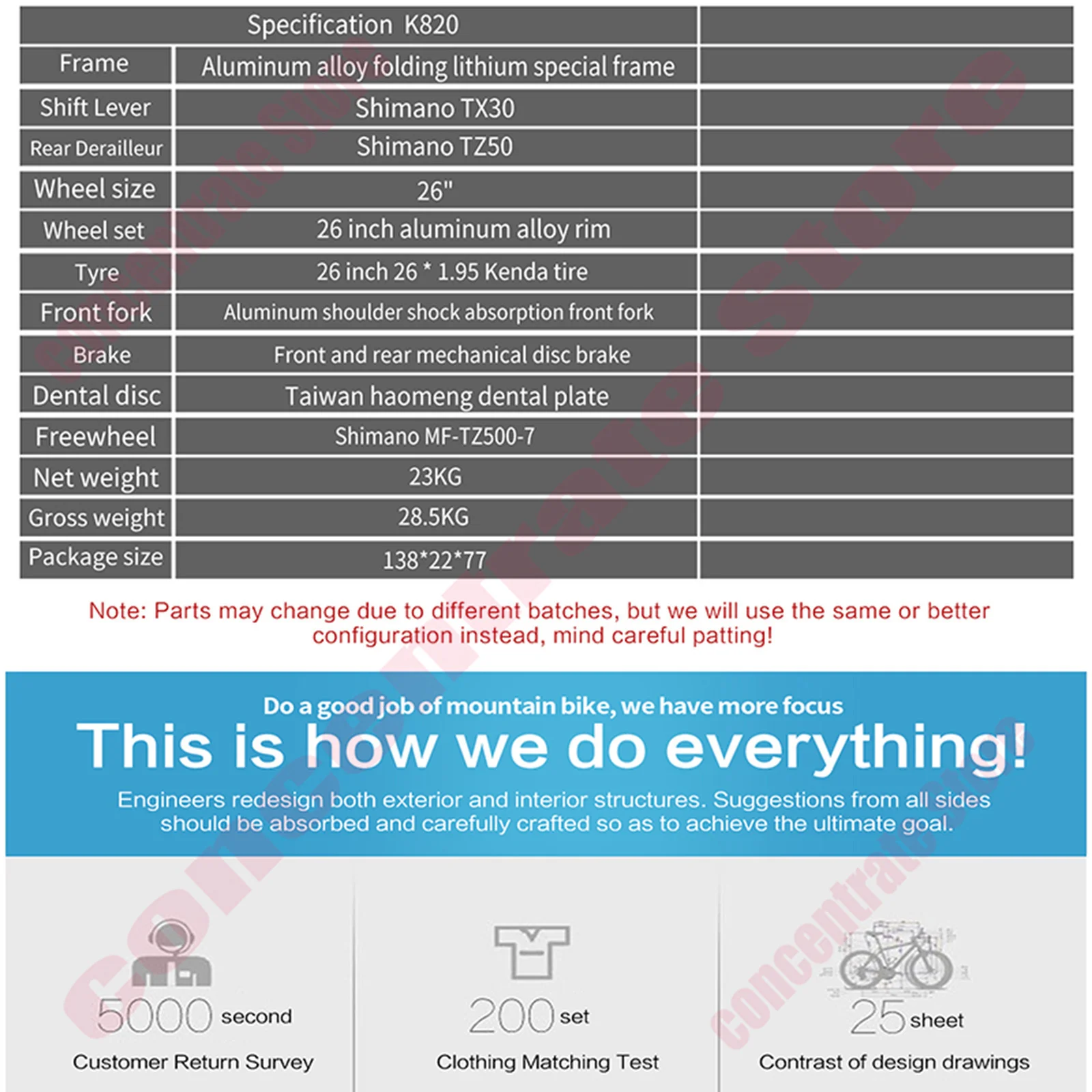 In addition to tires and brakes, one year warranty