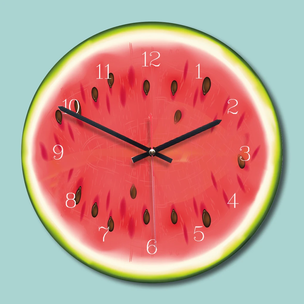 Акриловый циферблат с изображением фруктов с арабскими цифрами и черными и красными стрелками, благодаря чему настенные часы одеваются в вашу комнату.