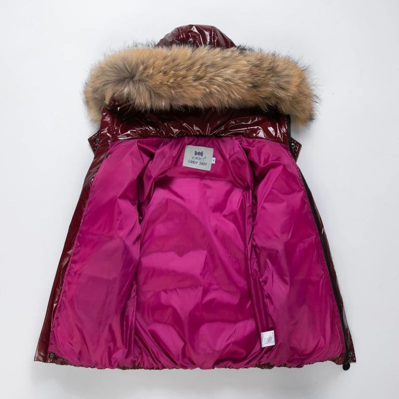 Детская пуховая куртка для мальчиков и девочек; Куртка с натуральным меховым воротником и отстегивающимся воротником до-30 градусов; Новая зимняя куртка с защитой от холода