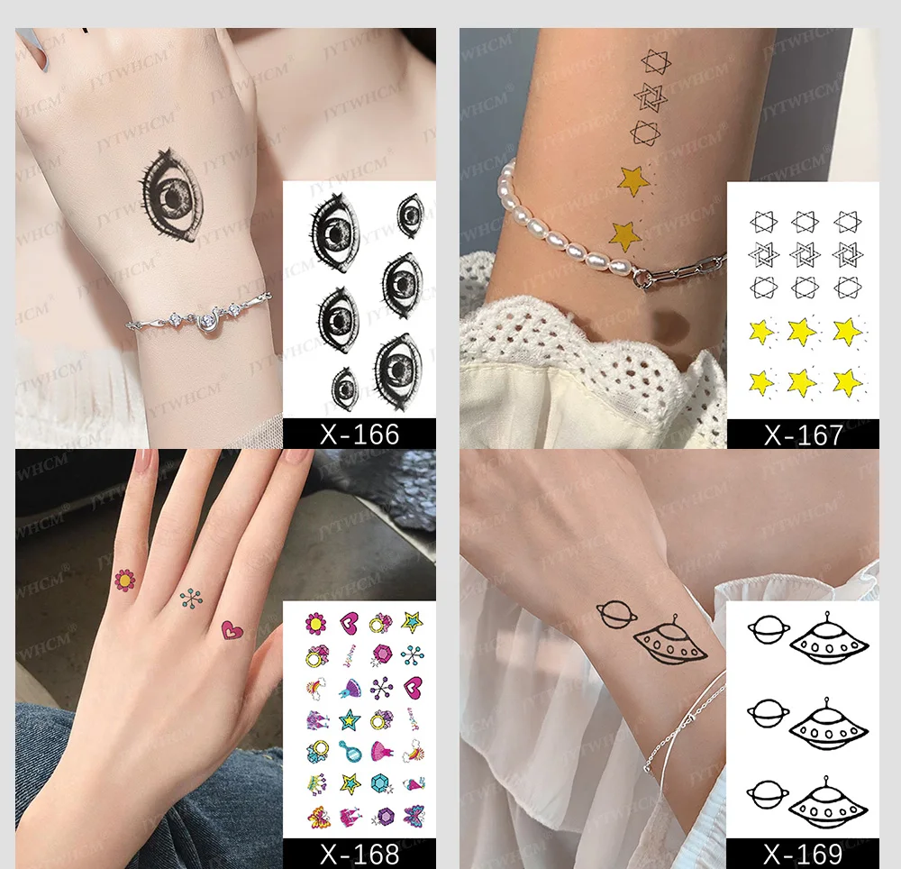 Временные тату для женщин, маленькие сексуальные черные Мультяшные тату со звездным листом, милые универсальные тату, наклейки для тела, тату, Детские Водонепроницаемые