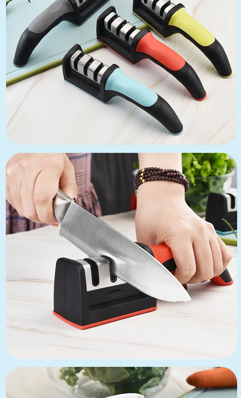 100% новый и высокое качество Простота в эксплуатации, безопасность и надежность. -Обязательный аксессуар одежды нового сезона и необходимости на кухне. Тип изделия: точилка для ножей Материал: нержавеющая сталь Подходит для: всех кухонных ножей и т. д. Вес: около 210 г Посылка включает в себя: 1 точилка для ножей