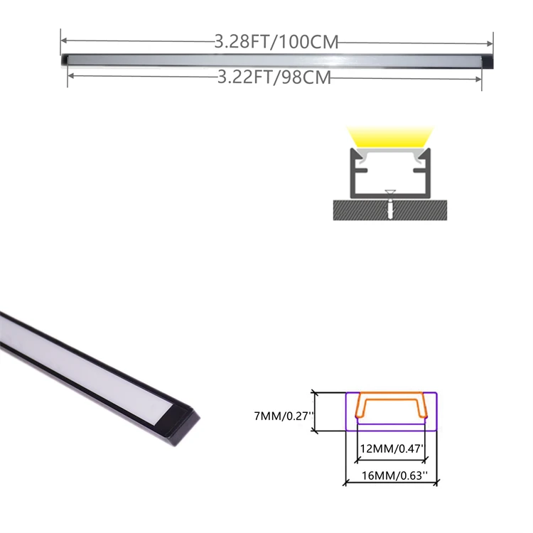 Светодиодный алюминиевый профиль для светодиодной панели-10 штук в партии, 100 см за штуку* Номер товара: BP-1607/BP-17.4/BP-24.7/BP-1616 * Размер: BP-1607 l1000xw16xh7 ммBP-17.4 l1000xw17.4xh7 ммBP-24.7 l1000xw24.7xh7 ммBP-1616 l1000xw16xh16мм * Материал: алюминиевый корпус + крышка ПК * Ширина печатной платы: 5-12 ммАксессуары: