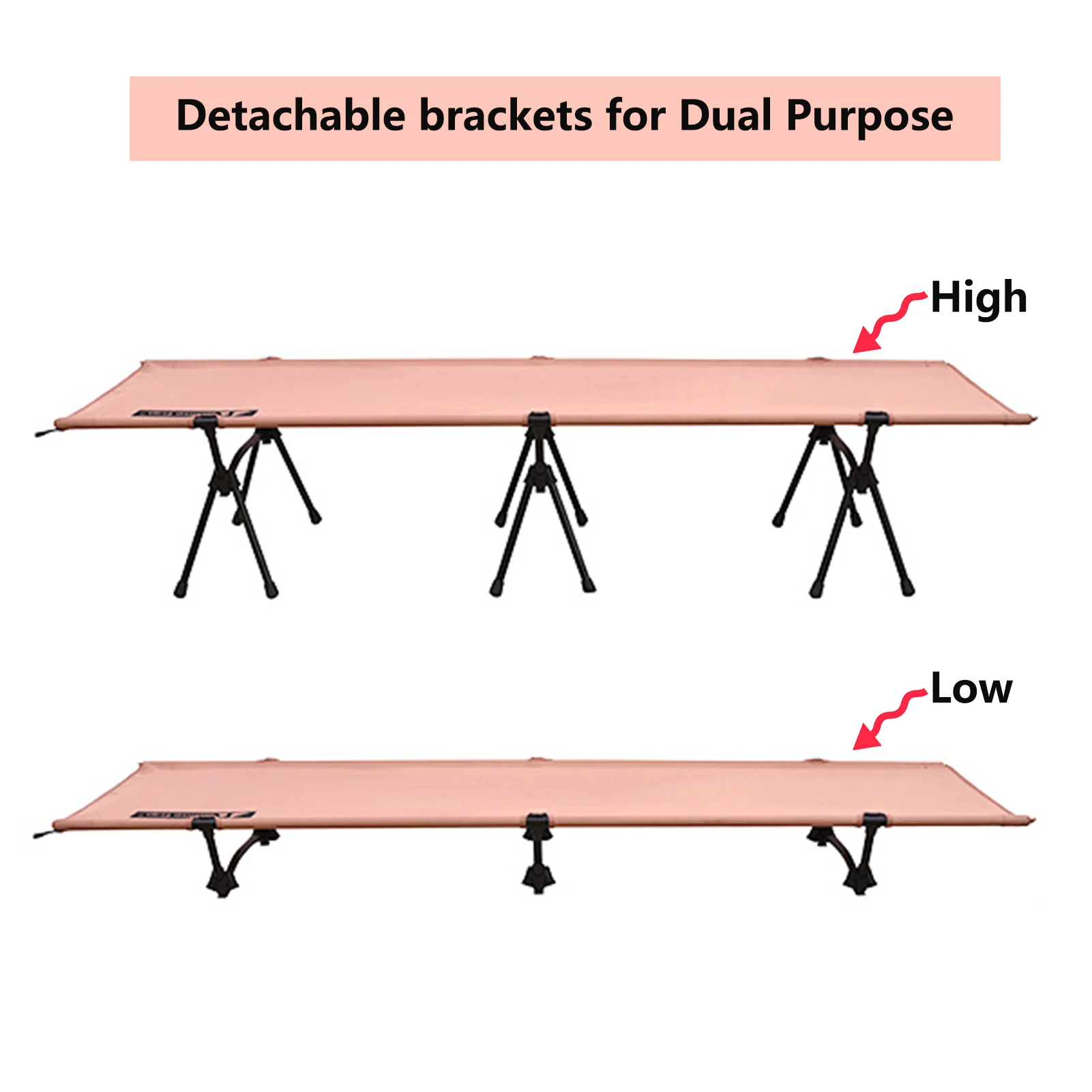 Складная Походная кроватка размером 74,8 "x 25. 6 ", предлагает достаточно и удобное спальное место для вас; Съемные кронштейны для различных потребностей в росте. Хороший вариант сна для кемпинга, альпинизма, пеших прогулок, дорожных поездок, путешествий, общего исследования и двора.