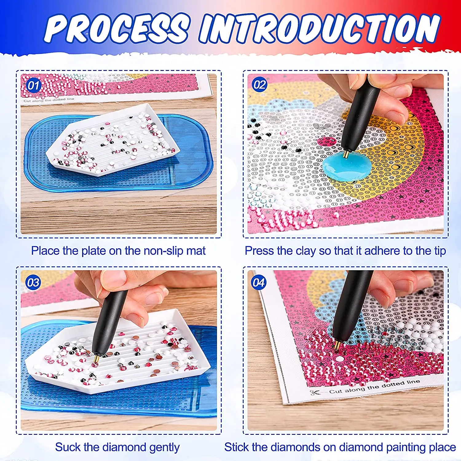 Алмазная ручка имеет широкий спектр применений и может быть применена в различных алмазных работах DIY, таких как Круглые бриллианты и квадратные бриллианты. Также может быть применен в ногтевых наклеиваемых ремеслах и мобильный телефон инструменты для украшения.