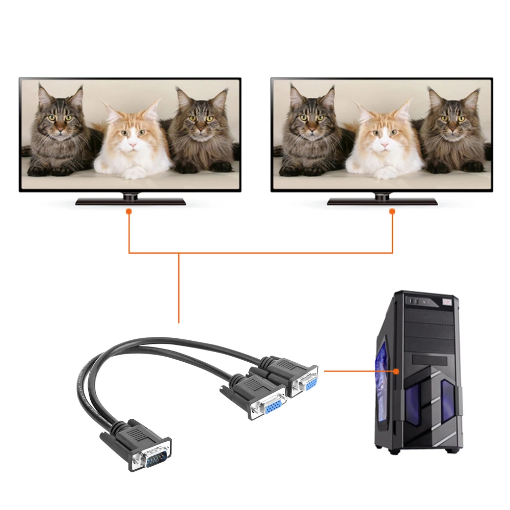 15 Pin VGA Мужской 2 Женский Y сплиттер кабель монитор адаптер видео Ведущий для ПК ТВ
