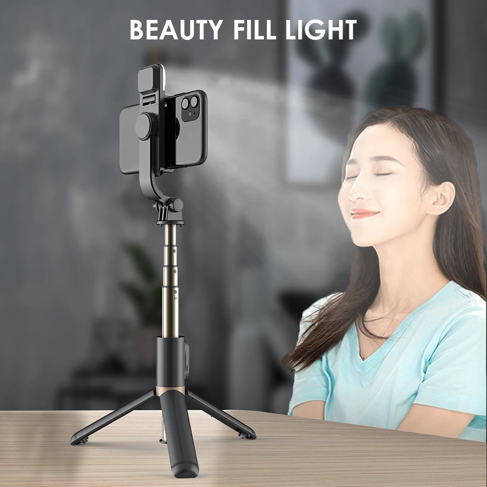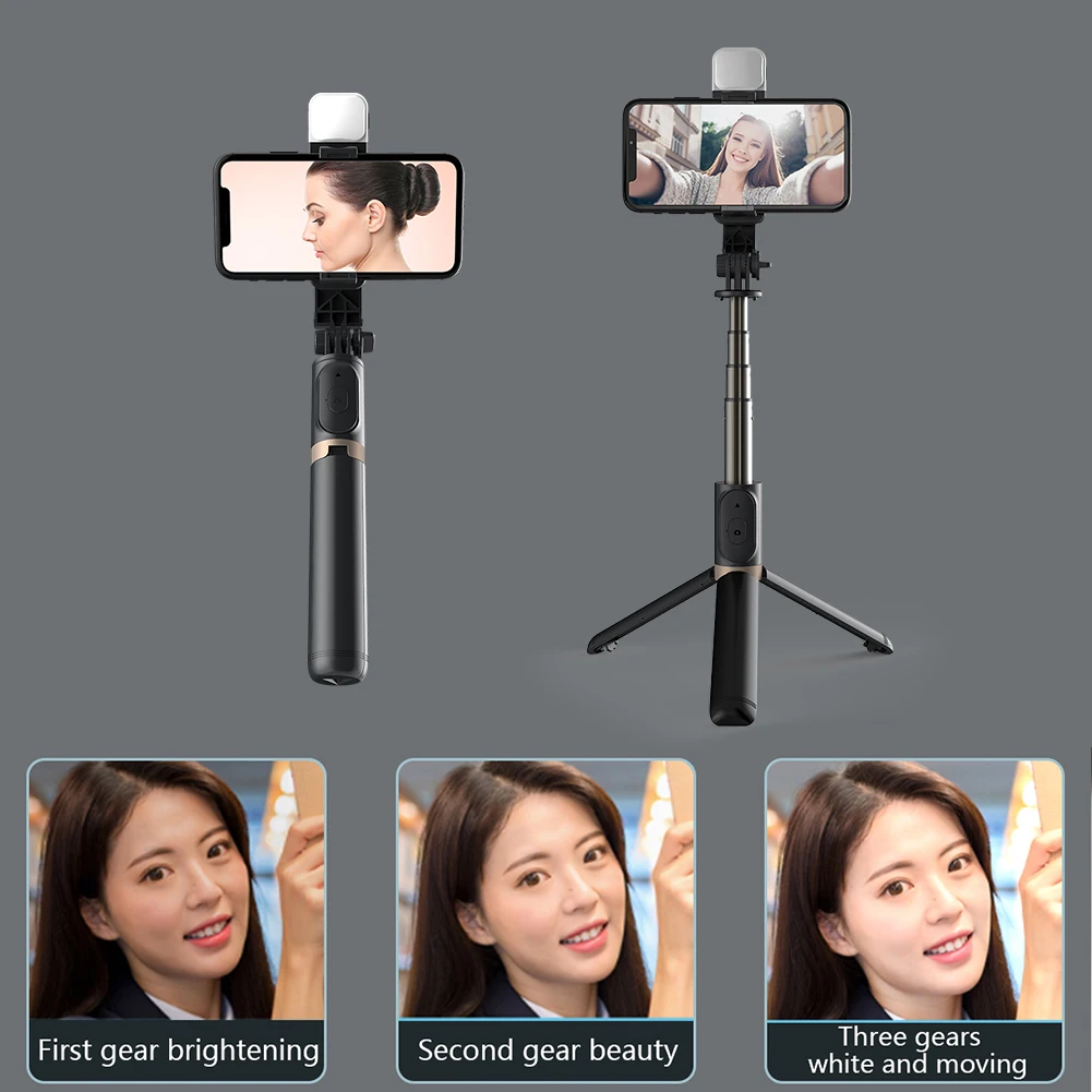 Q03S алюминиевый Bluetooth-совместимый селфи палка с дистанционным затвором + Dimmable заполняющий свет штатив монопод для iPhone Android