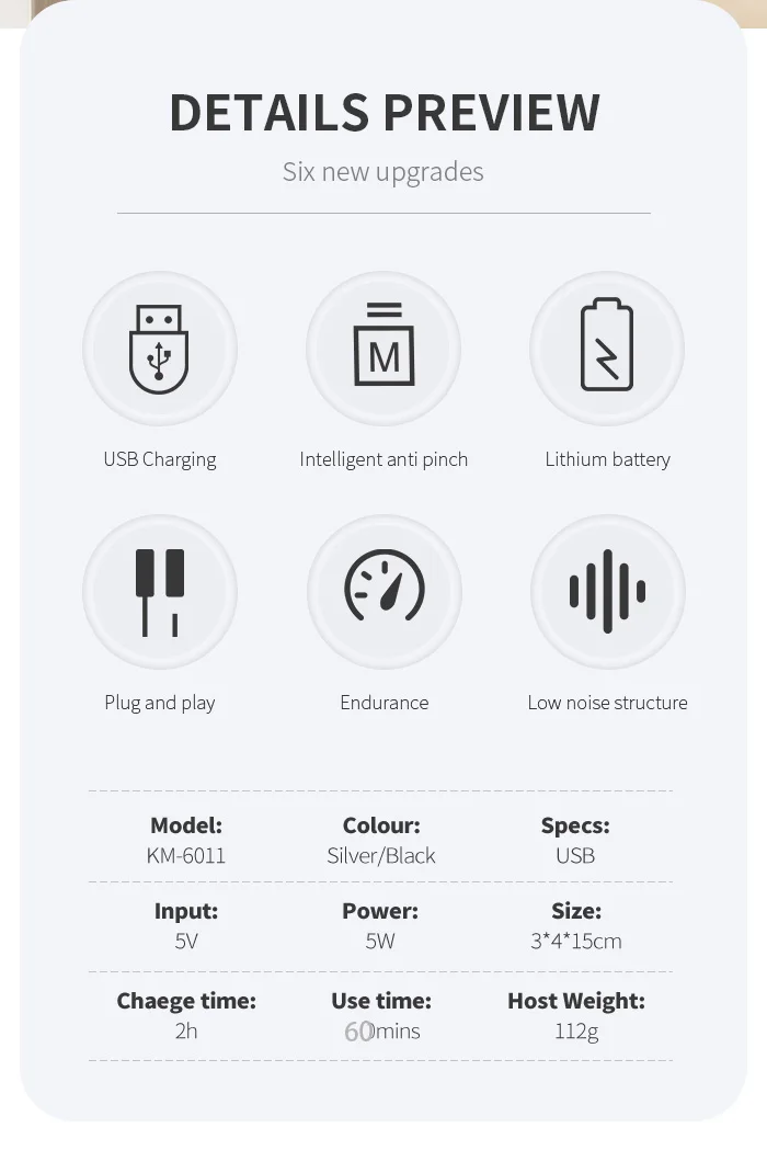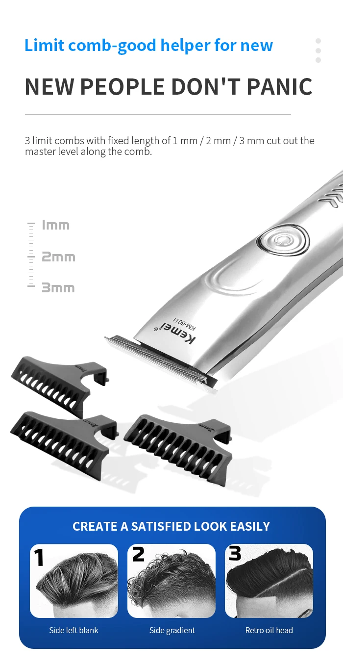 Фирменное наименование: kemei Пол: Мужской, женский. Ребенок Тип питания: перезаряжаемый Использование: лицо, борода, усы, Парикмахерская. Напряжение: 100-240 В Время зарядки: 2 часа Время работы: 60 минут Мощность: 5 Вт Номер модели: KM-6011 Двигатель: очень мощный Цвет: серебристый и черный Материал: АБС-пластик Батарея: 600 мАч Особенности: Портативный размер, меньше, чем размер мобильного телефона Профессиональный парикмахерский инструмент, он также может быть использован в домашних условиях. Быстрая зарядка литий-ионная батарея Очень сильный Мощный, и мини-размер корпуса Два цвета: черный и серебристый. 0 мм Т-лезвие, вы можете сделать линию волос, лысые головы. Посылка включает в себя: 1 х Триммер для волос 1 х Защитная крышка USB кабель (1 шт.); Щеточка для чистки-1 шт.; Руководство пользователя-1 шт.; 3 x лимит расчески 1 х оригинальная коробка (два варианта) Примечание: ваш отзыв очень важен для нас, пожалуйста, оставьте хороший отзыв и пять звезд для нас, если вы удовлетворены нашими товарами и обслуживанием. Пожалуйста, свяжитесь с нами, прежде чем оставить отрицательный отзыв или открыть любой спор на сайте. Мы поможем вам решить проблему. Смазочное масло является жидким, относится к товарам и товарам, авиакомпания и таможня не принимают транзитные перевозки, пожалуйста, обратите внимание! Спасибо за понимание, хороший день.