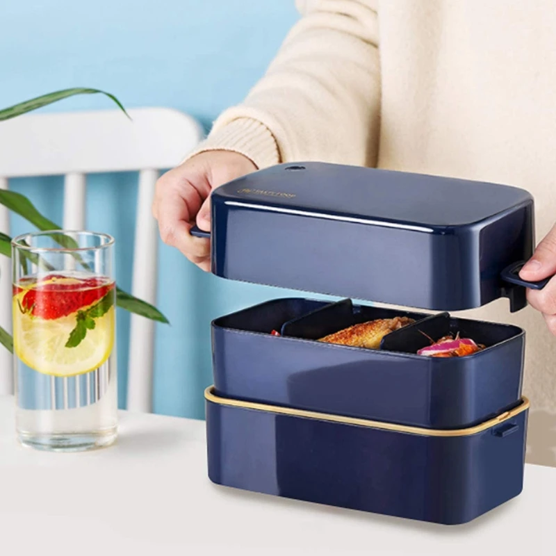 Коробки для обедов, 2-Слои бенто ланч бокс набор столовых приборов, Коробки для обедов Коробки для детей и взрослых работы, школы, 850 мл