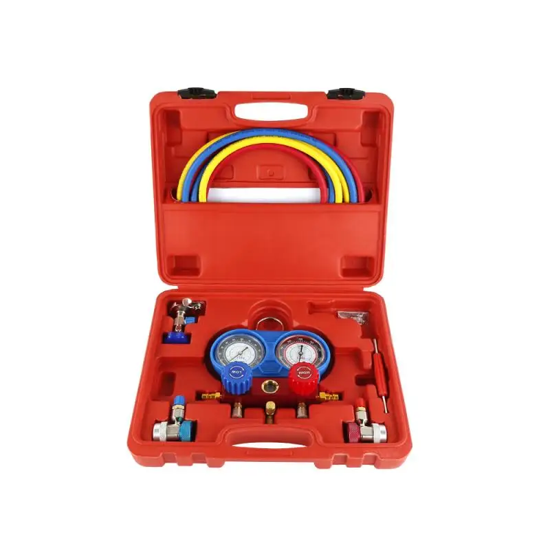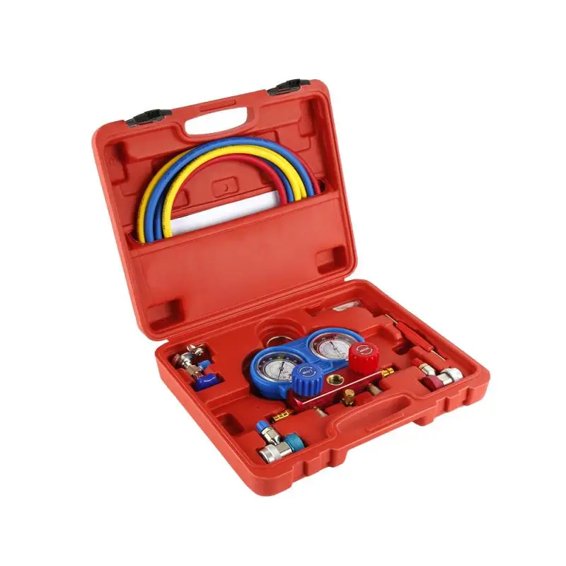 加注制冷剂,流量测量和控制时使用FO的高压制冷剂表组 。 有两个复合压力表,挂钩和三个 36 英寸的红色,黄色,蓝色和白橡木管 。