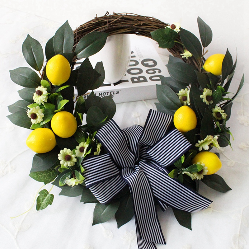 1. Предпочтительный материал: ручная работа, есть шелковые листья, искусственные лимоны, зеленые листья, ленты и коричневые прочные ветви, закрывают дно гирлянды, делают гирлянду более сильной и улучшают ее красоту.