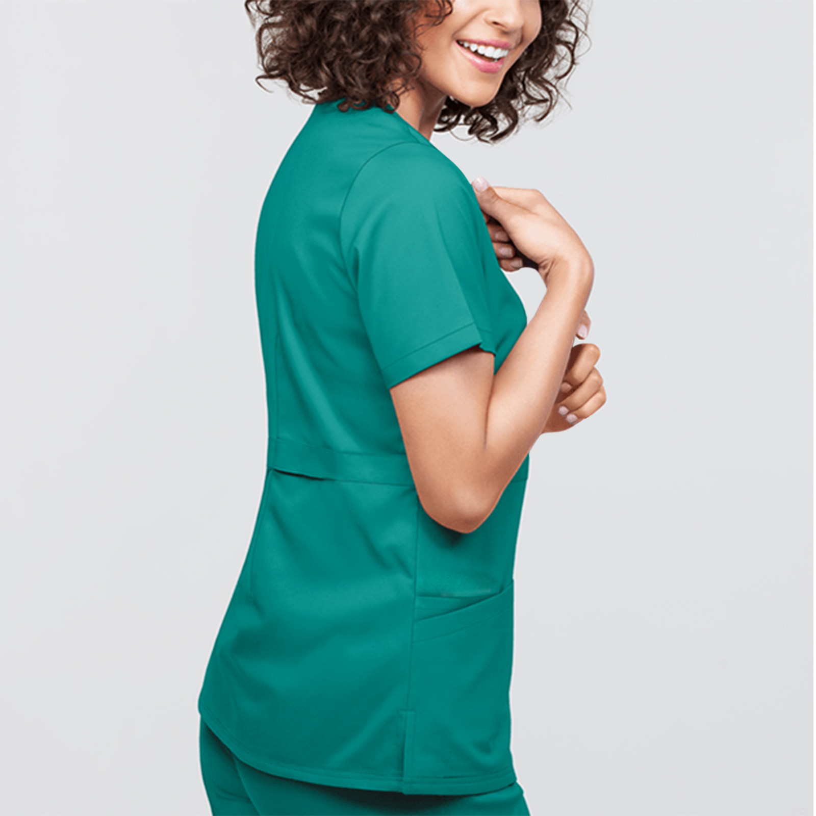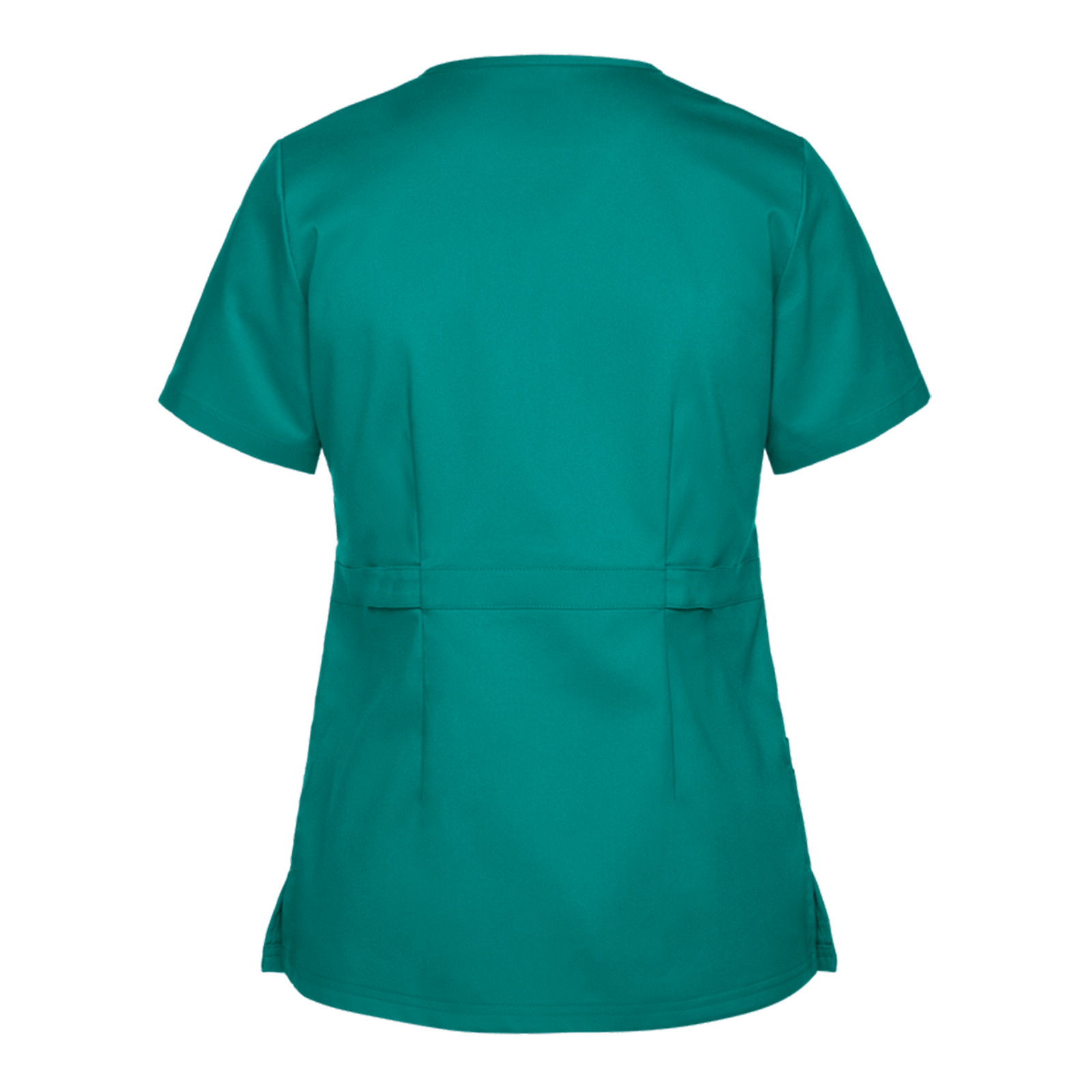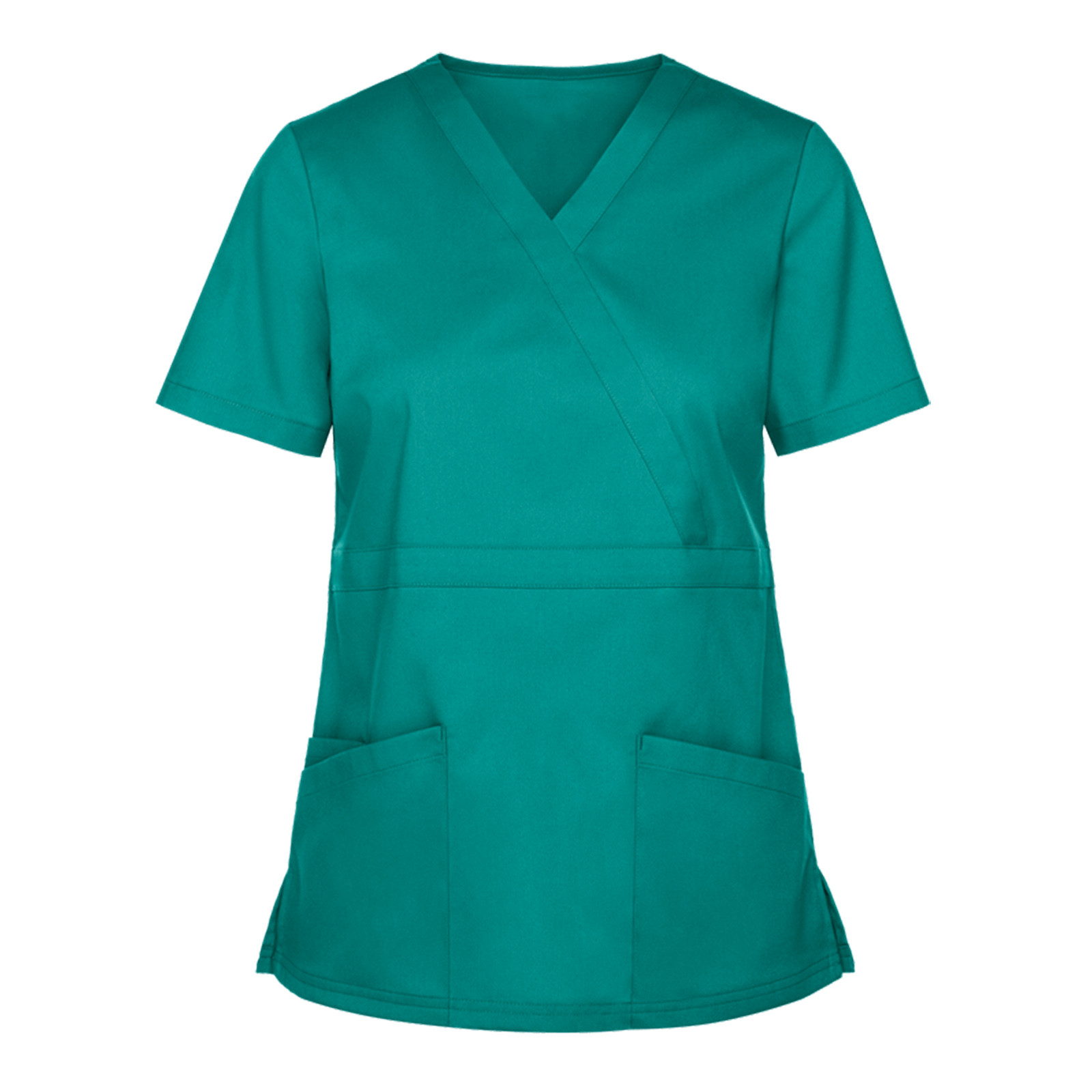 Новые Женские однотонные рабочие Топы с коротким рукавом и карманами, униформа медсестры, блузка для больничных работников A40