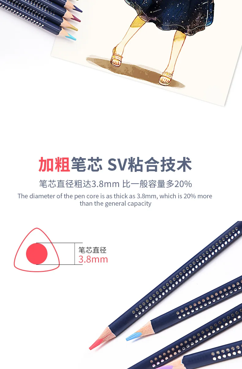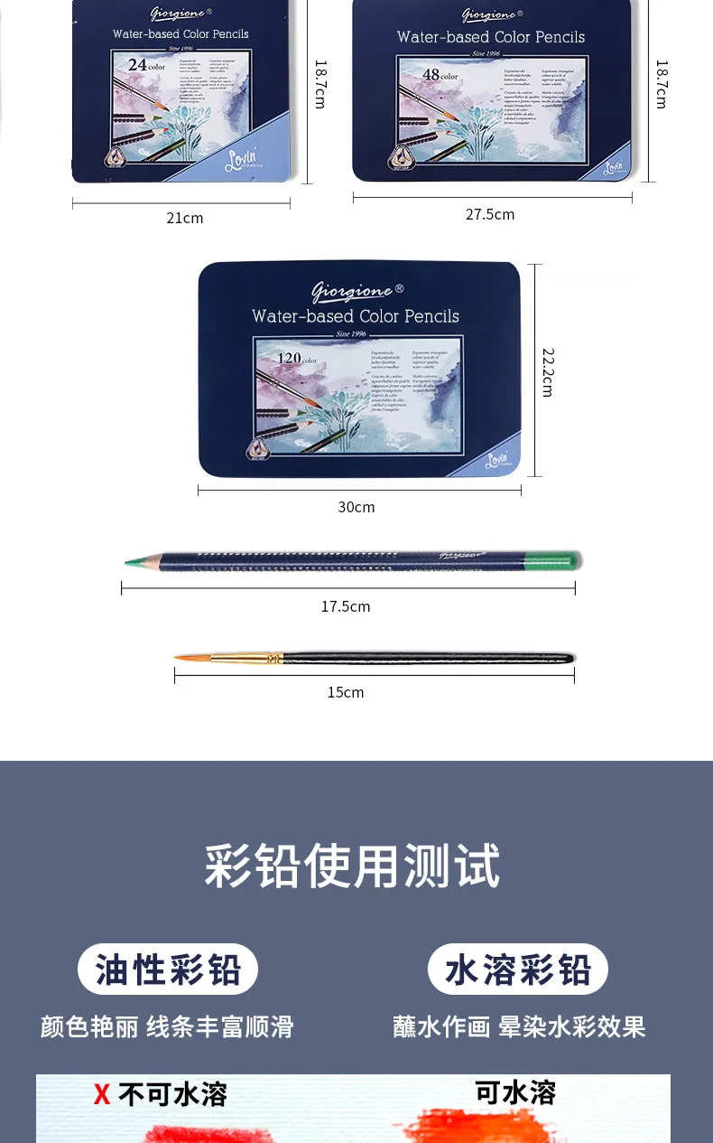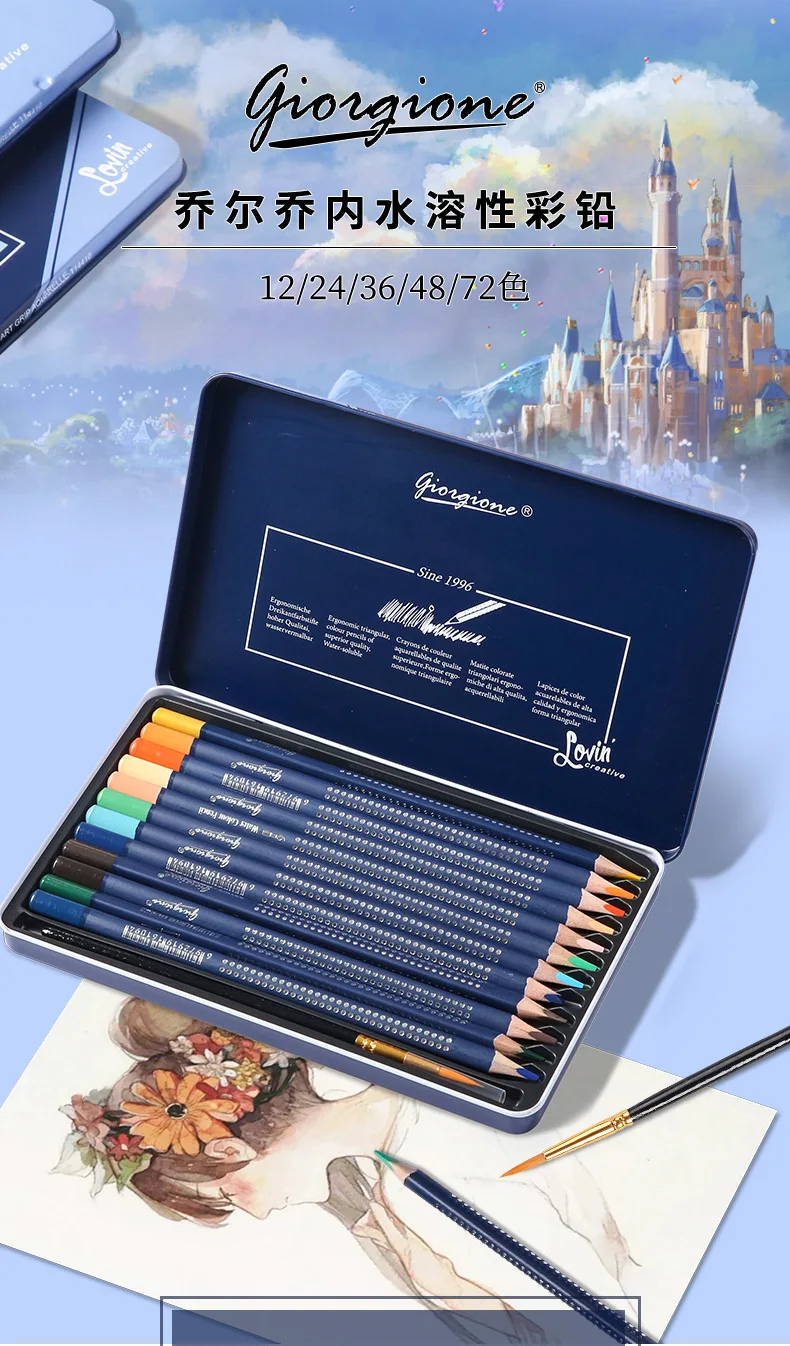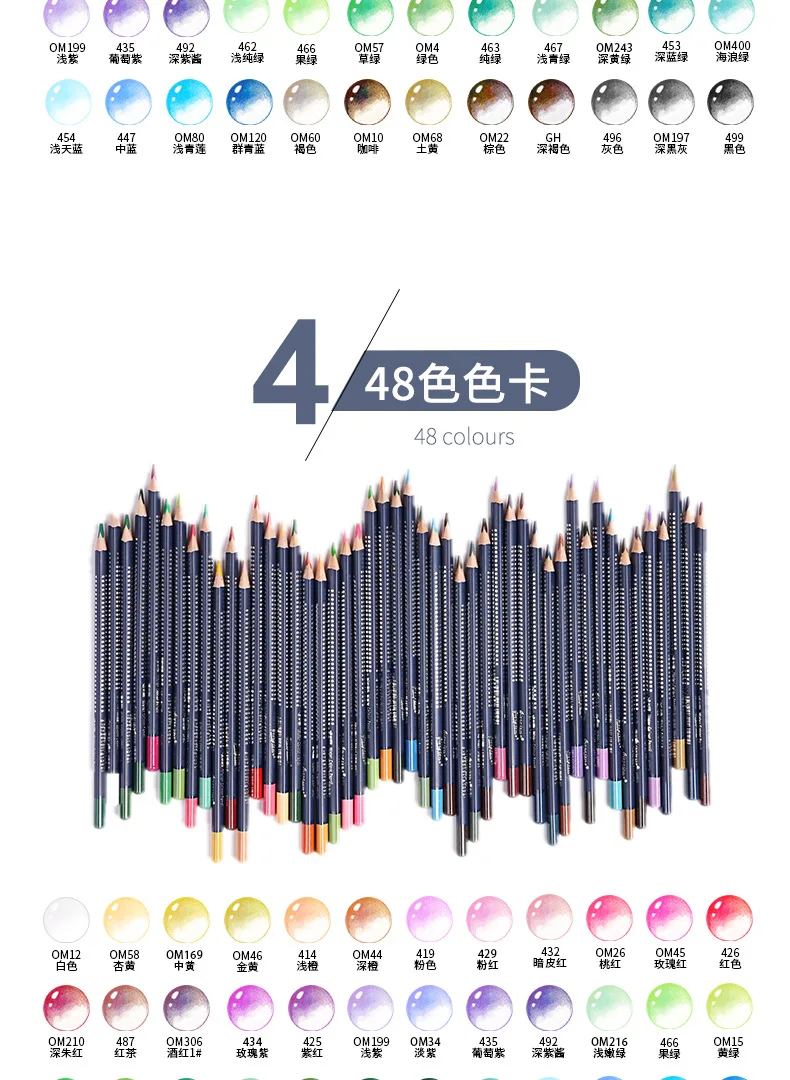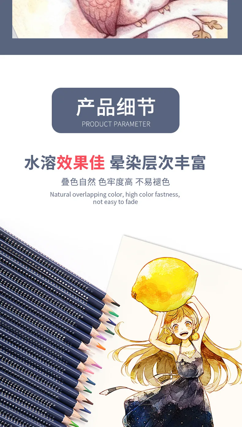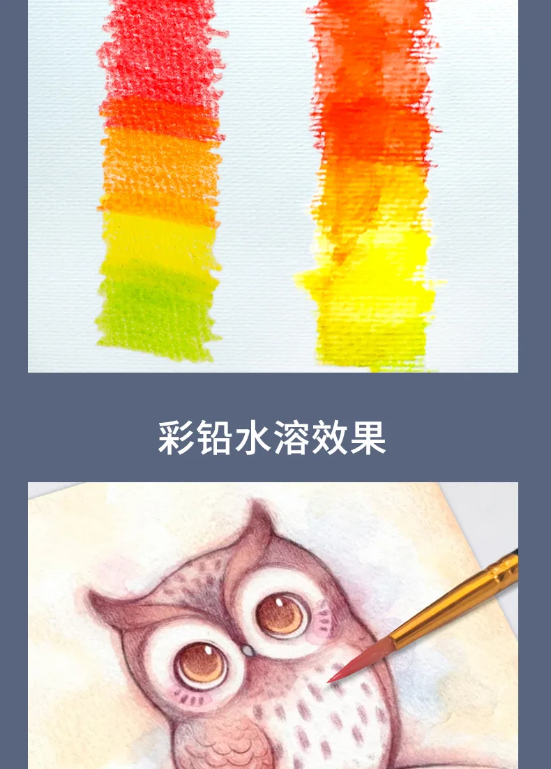 2. Дизайн: диаметр Заправка может быть 3,8 мм, который является 20% больше, чем обычные, он поставляется с акварель кисти. Водорастворимый эффект акварельных карандашей очень хороший, слой смешивания цветов богатый, это Не легко выцветает и обладает сухим и влажным эффектом смешивания. Треугольный карандаш соответствует эргономичной форме и имеет удобный захват. Он улучшает опыт окраски и подходит для