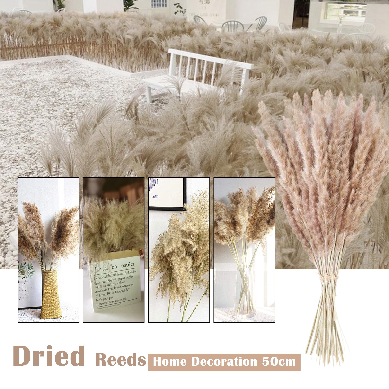 50 см Натуральные сушеные цветы коричневый букет Бохо украшения дома спальни гостиной Свадебные украшения