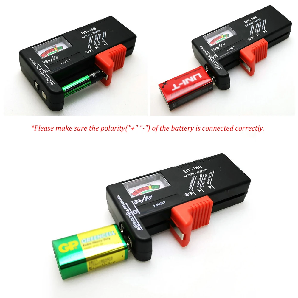 [Универсальное применение]Используется для тестирования различных стандартных и перезаряжаемых батарей: AA, AAA, C, D, 1. 5 В, 9 В и тип кнопки.