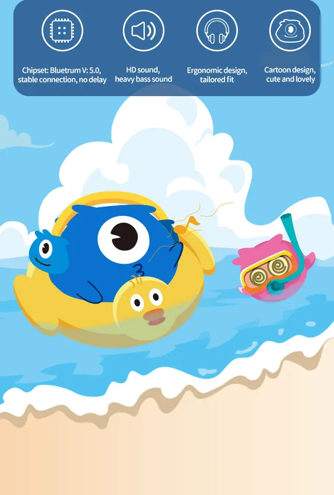 Технические характеристики Тип: беспроводной + проводной Bluetooth: V5.0 Микрофон: Да Поддержка tf-карты С аккумулятором 200 мАч Время зарядки: около 0,8 часов Время работы: около 6 часов
