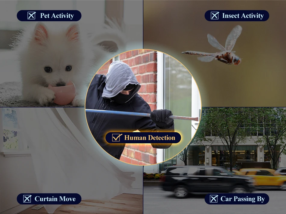 Только когда люди проходят зону сигнализации, камера отправляет сигнал тревоги, повышая точность сигнала.
