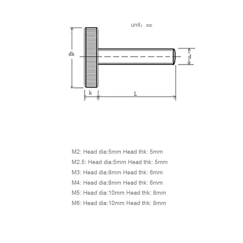 M2.5: диаметр головки: 5 мм thk: 5 мм