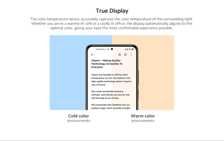 Датчик цветовой температуры точно фиксирует цветовую температуру окружающего светильник. Независимо от того, находитесь ли вы в горячо освещенном кафе или прохладном офисе, дисплей Автоматически подстраивается под оптимальный цвет, придавая вашим глазам максимально комфортный опыт.