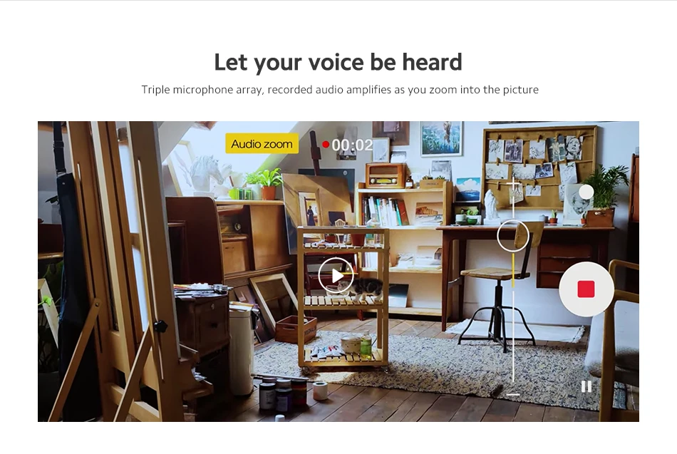 Тройной микрофон, записанный звук усиливает, как вы увеличиваете изображение