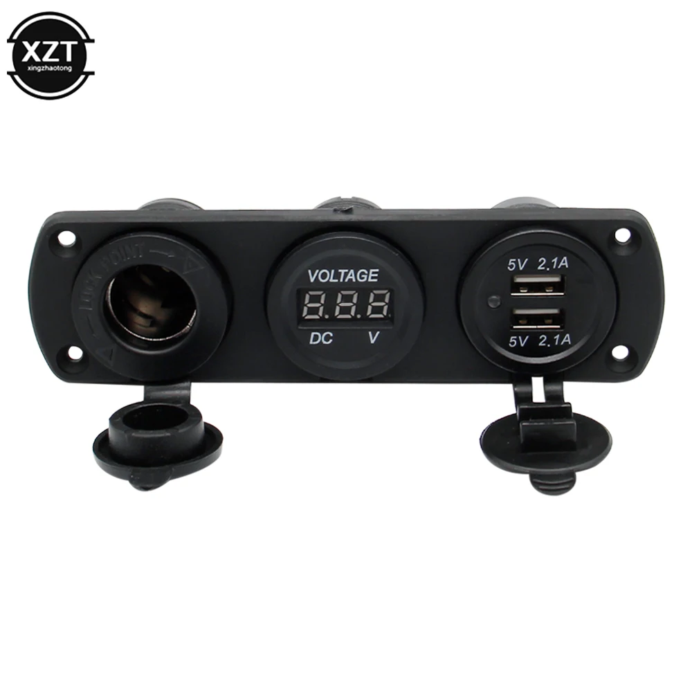 1. Основание панели с тремя отверстиями: штепсельная вилка прикуривателя + дисплей напряжения + двойной USB. Небольшой размер и отличная производительность. Простота установки, удобство в использовании. Универсальный подходит для автомобиля 12 В, мотоцикла, ATV, лодки, автомобиля или корабля.