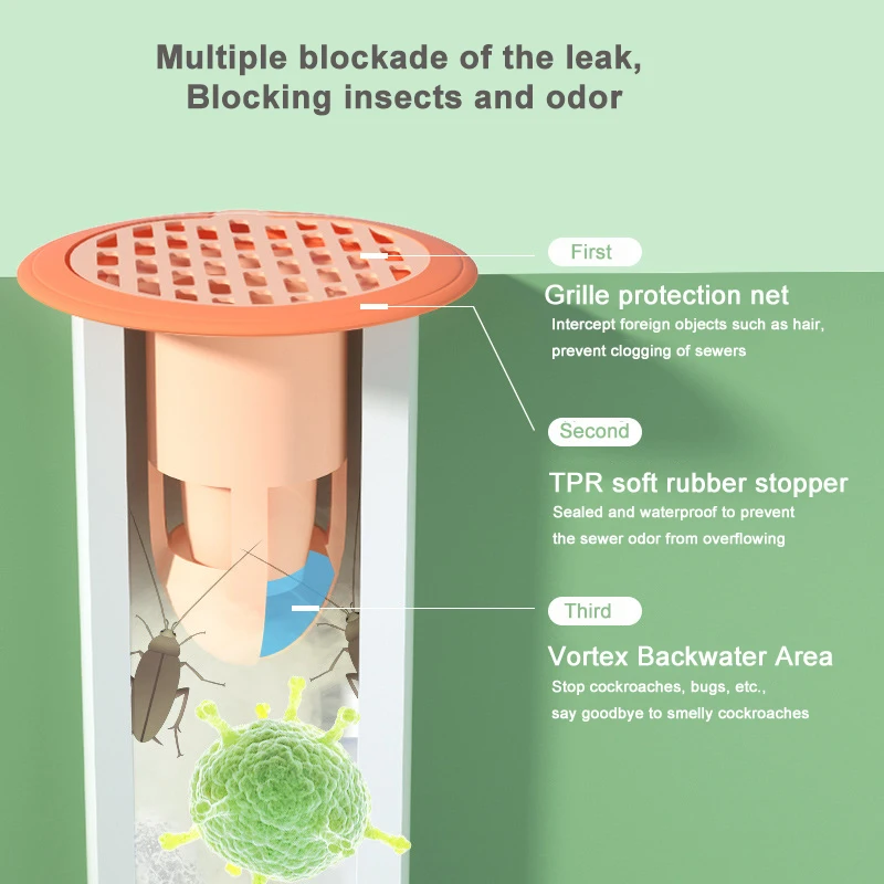 Крышка Слива пола использует дизайн flod, который может предотвратить насекомых.