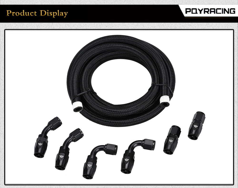 100% гарантия качества протестирована, более отзывчива, дешевле, проще в установке.В основном работает с охлаждающей жидкостью, топливом, дизелем, маслом, гидравлической жидкостью, насосным газом, спиртом и воздухом. Не подходит для E85.Съемная головка для нажатия или закручивания.Отсутствие утечки при высоком давлении и температуре.Рабочая температура: от-40 F до + 257 F.Рабочее давление: 500PSI.Давление разрыва: 2000psi.Предназначен для работы с гоночным и внедорожным вождением, если вам нужен другой тип шланга и фитинга, такой как AN8 и AN10, пожалуйста, проверьте наш магазин и свяжитесь с нами!Материал и цвет: