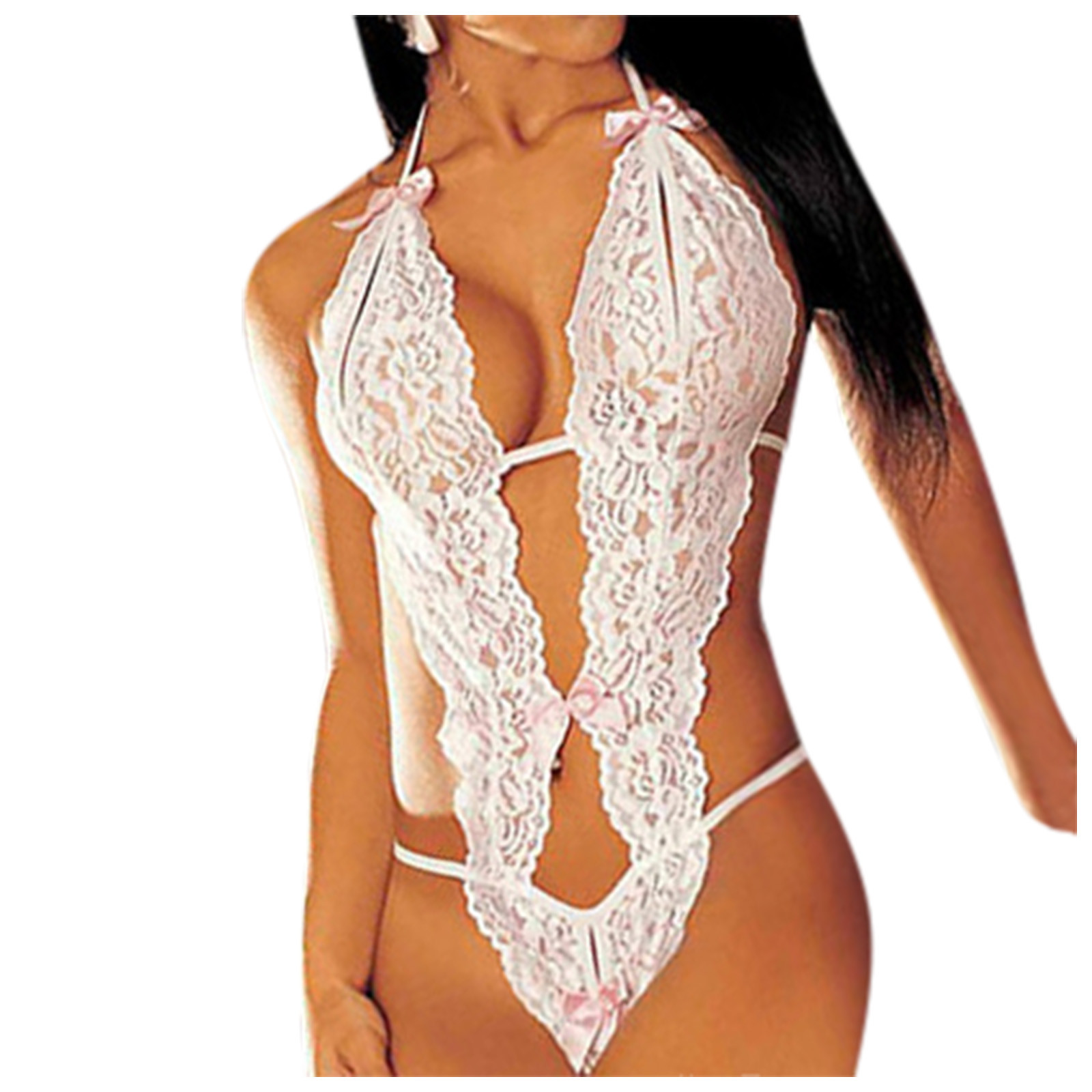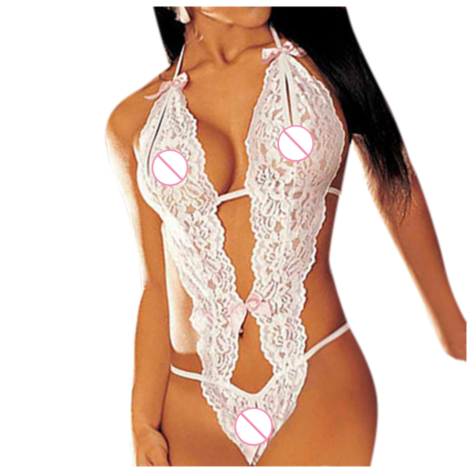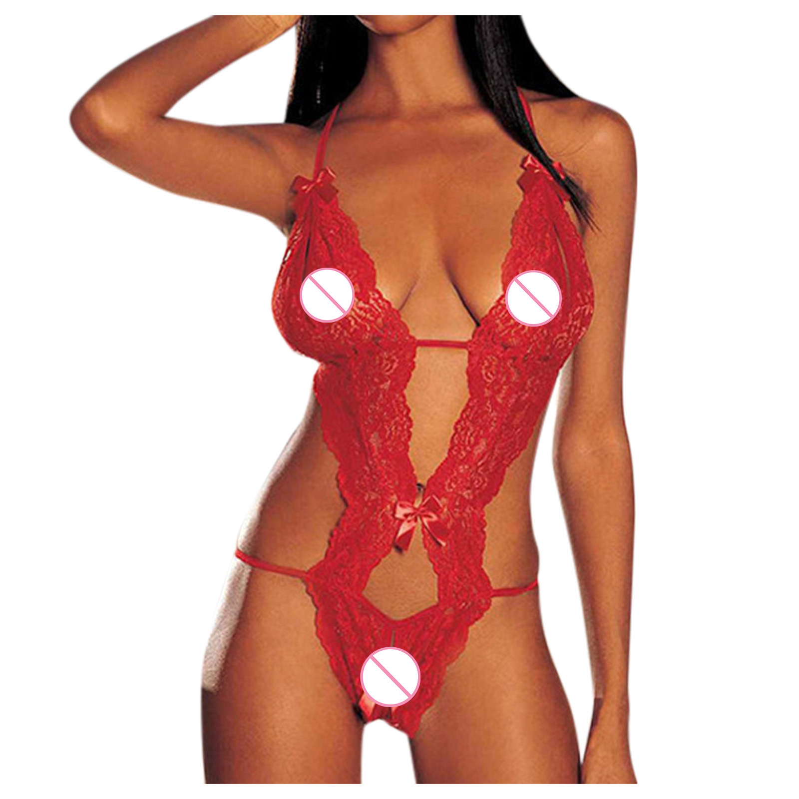 Женский сексуальный бюстгальтер из 3 частей, соединенное тело, Сексуальная кружевная Пижама с открытой промежностью