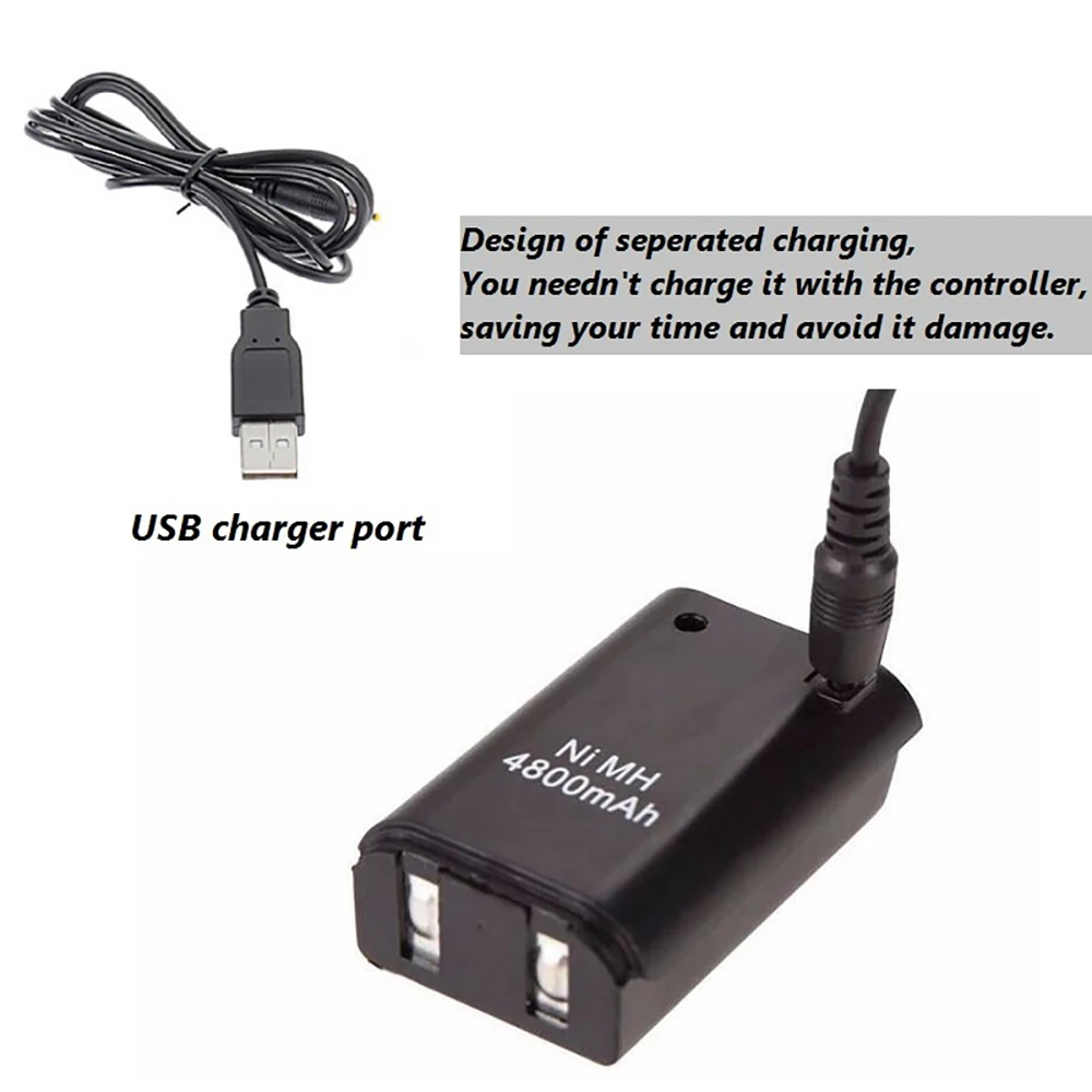 Убедитесь, что у вас никогда не закончились батарейки во время решающей игры. Совместим с: беспроводным контроллером Microsoft Xbox 360 Посылка2 USB-кабеля для зарядки2 * Аккумулятор(Контроллер в комплект не входит)