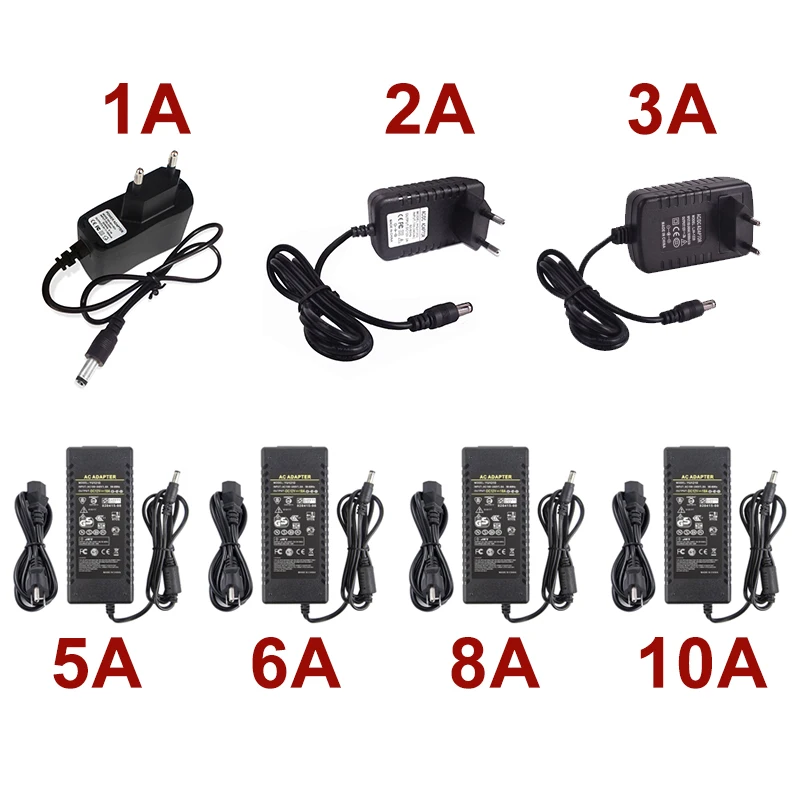 12 вольт блок питания 12 В адаптер питания США ЕС вилка адаптера 1A 2A 3A 5A 6A 8A 10A трансформатор переменного тока 220 В постоянного тока 12 В для светодиодной ленты