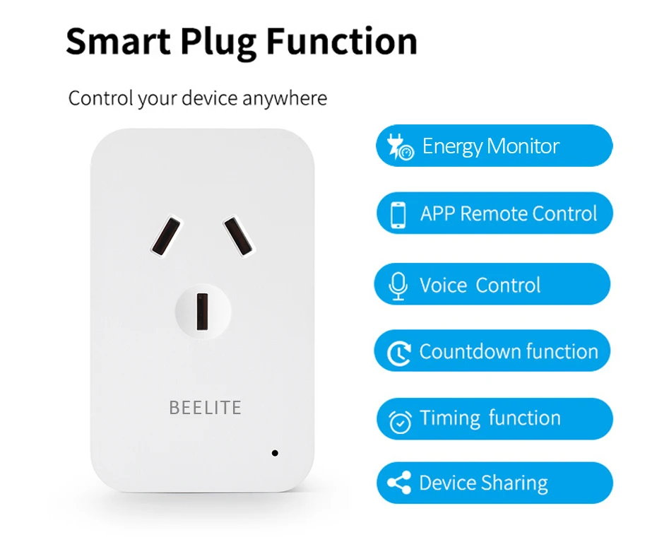 Не требуется концентратор и не нужно платить за услугу подписки. Просто подключите ваши электрические приборы в Beelite умная розетка и Подключитесь к приложение smart Life/приложение Tuya в соответствии с защищенной 2,4 ГГц сети Wi-Fi.