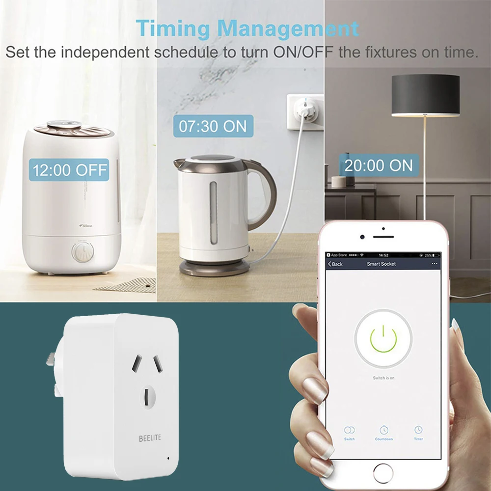 Установите смарт-вилки, включайте или выключайте автоматически в определенное время. Вы можете подготовить ужин, прежде чем отправиться домой, или дистанционно управлять другими электрическими элементами, такими как лампы, электрические чайники, кофеварки, вентиляторы и т. д. Умная вилка Beelite поможет вам сэкономить на счете за электричество и продлить срок службы продукта