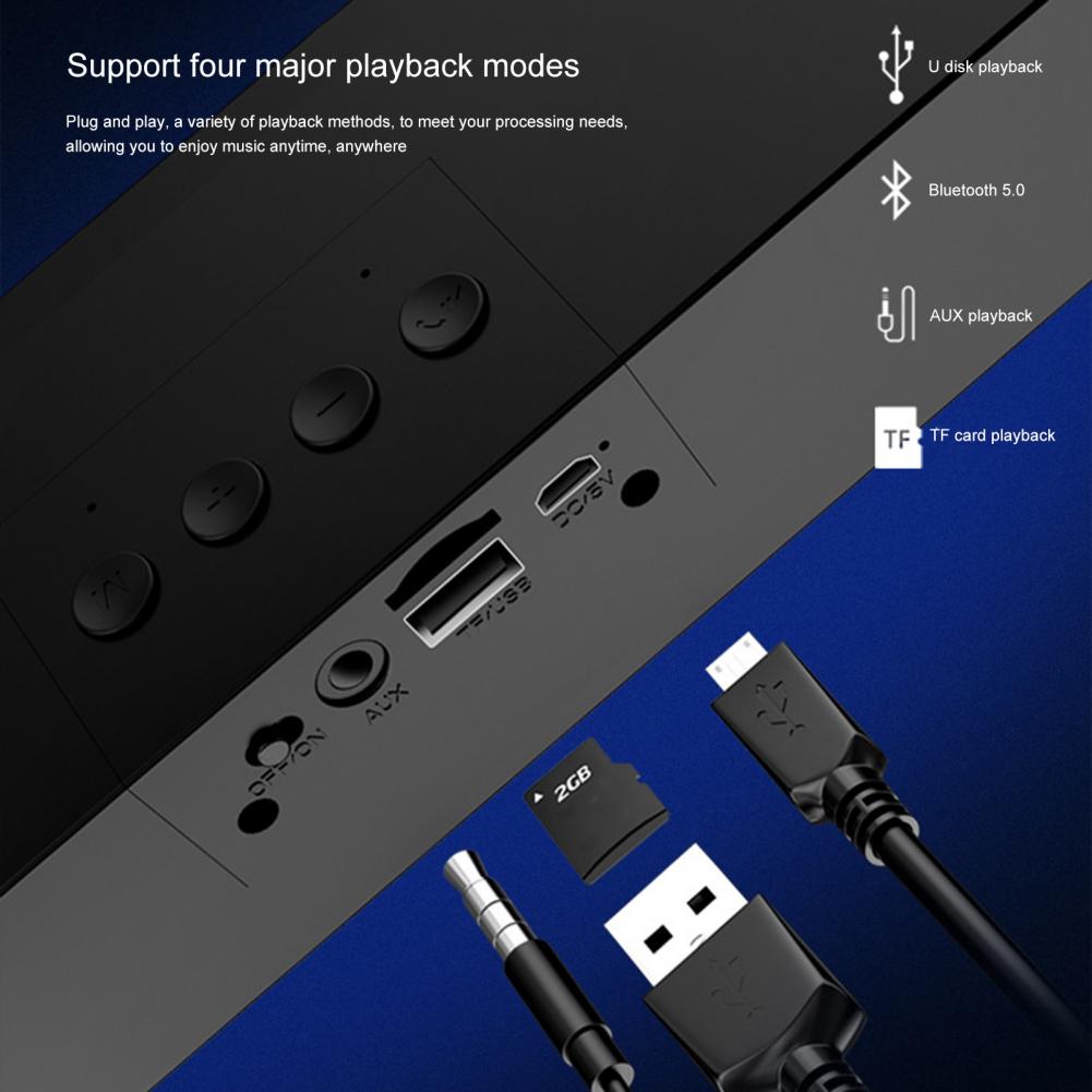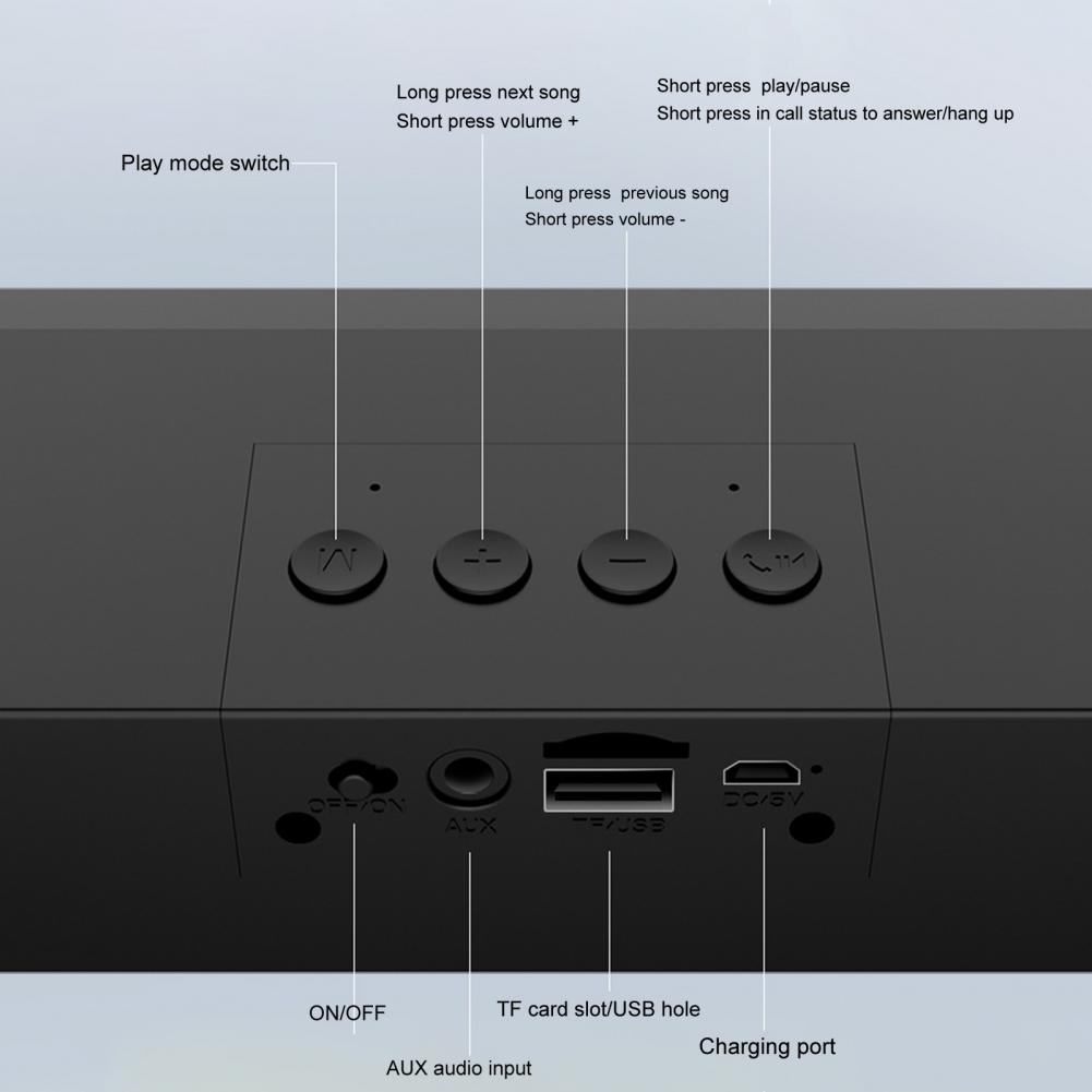 Беспроводной динамик имеет встроенный аккумулятор большой емкости, который имеет длительный срок службы батареи. С функцией воспроизведения AUX можно подключать к компьютеру для воспроизведения.