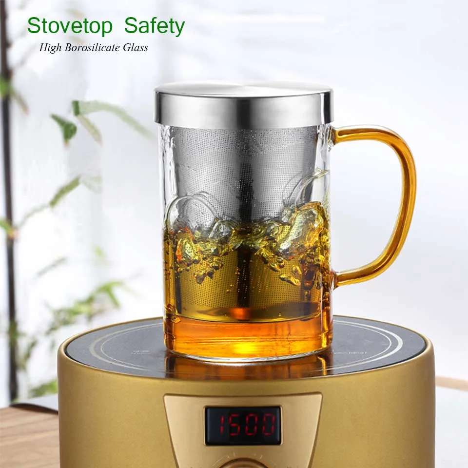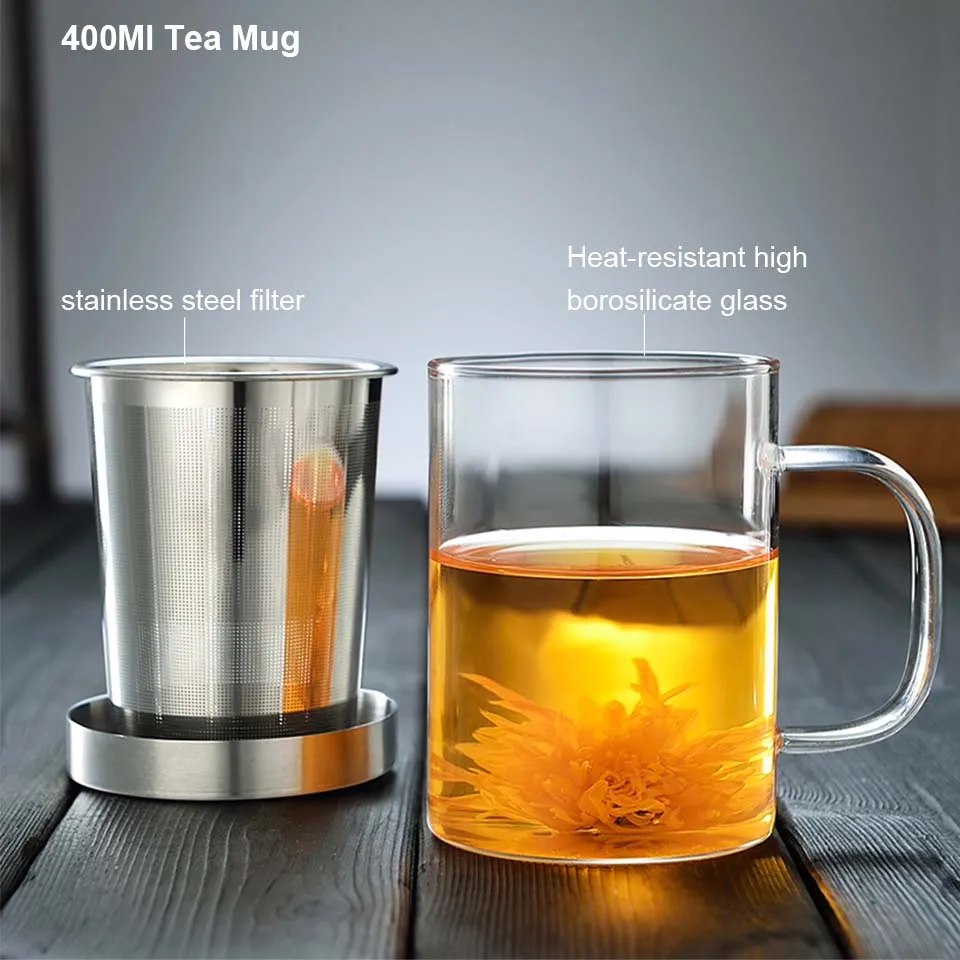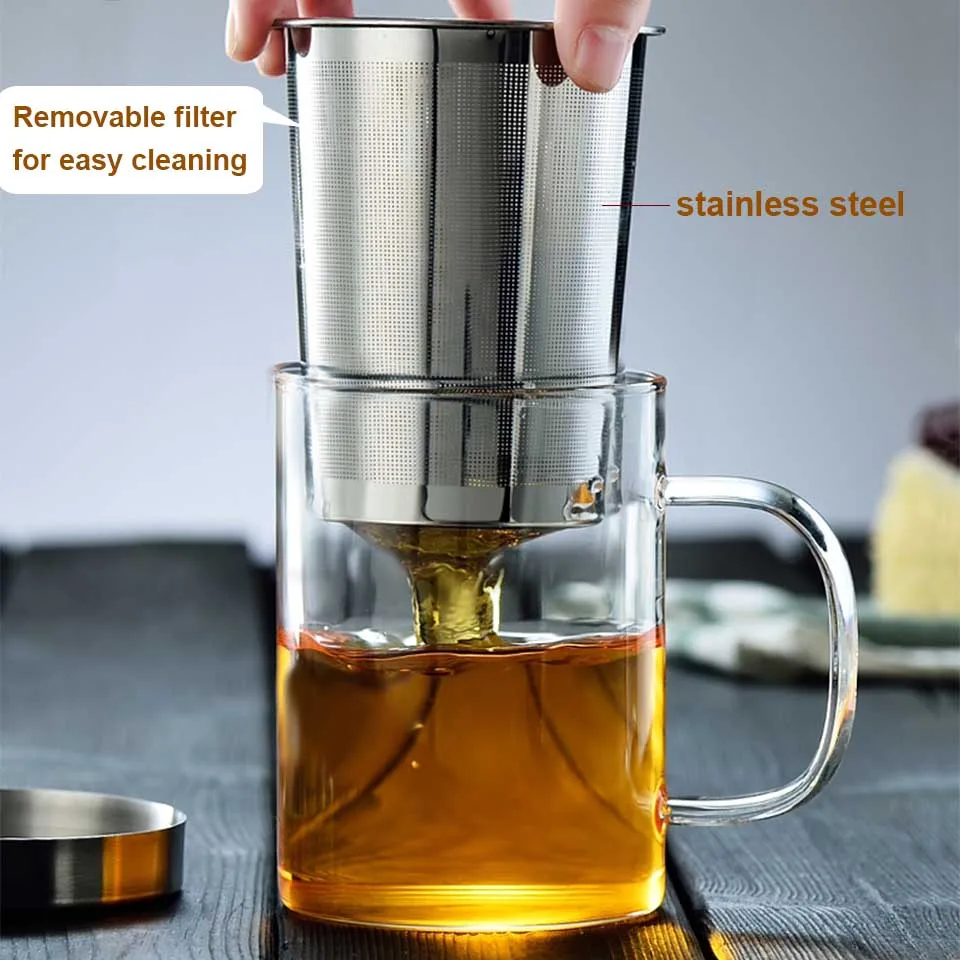 Термостойкая стеклянная чайная чашка BORREY, кружка для заварки чая со съемным фильтром, Офисная кофейная кружка, стаканы, большая кружка, Цветочный чайный горшок