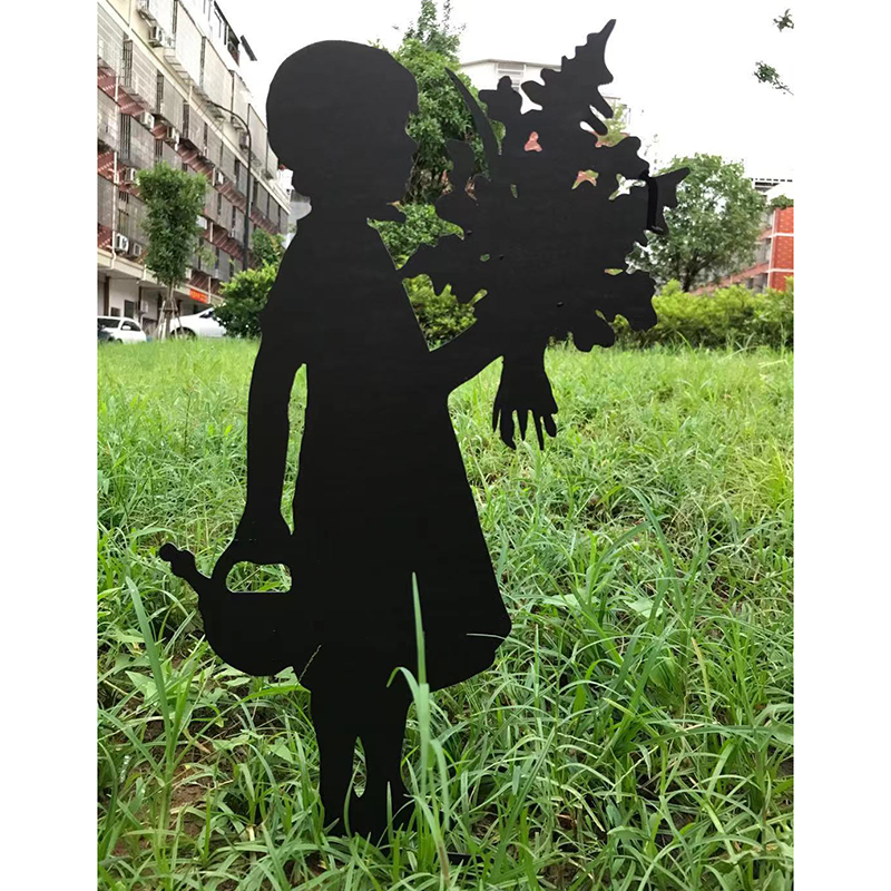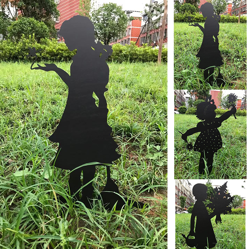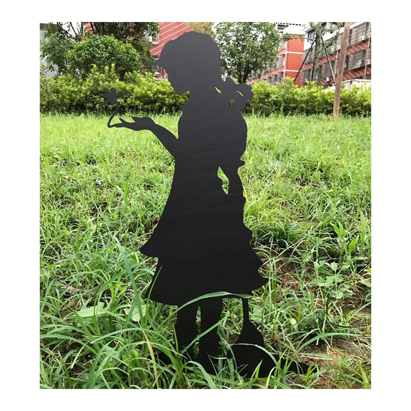 Милый Сад орнамент для девочки металлических художественных силуэт статуя Изысканные Подарки для двор дома газона украшение распродажа