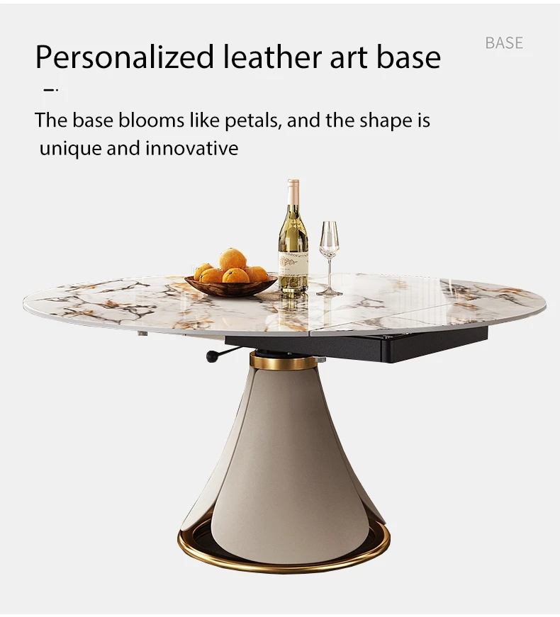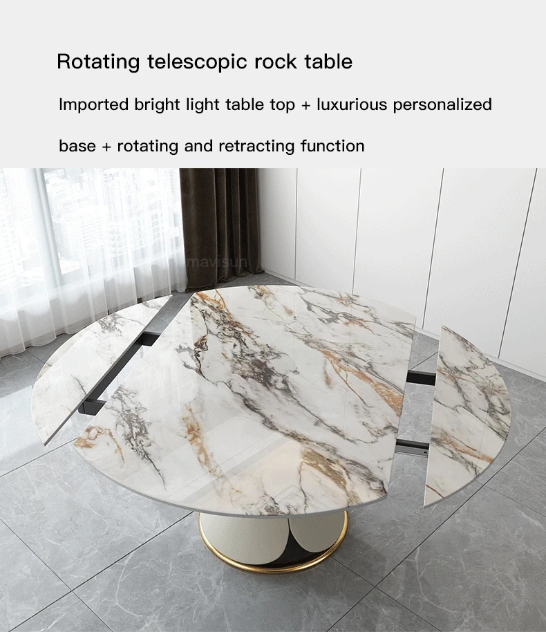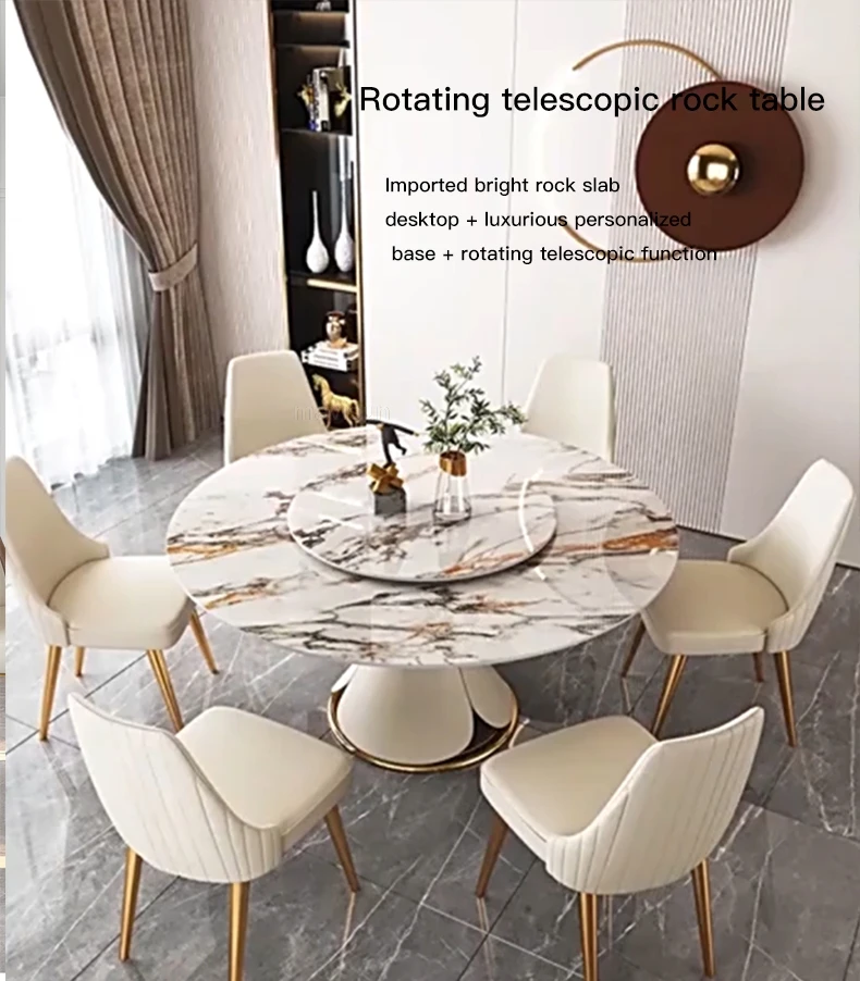 Nordic Light Luxury Small Household Extendable Table With Turntable Dining Set 8 Chairs With Marble Table Kitchen Furniture