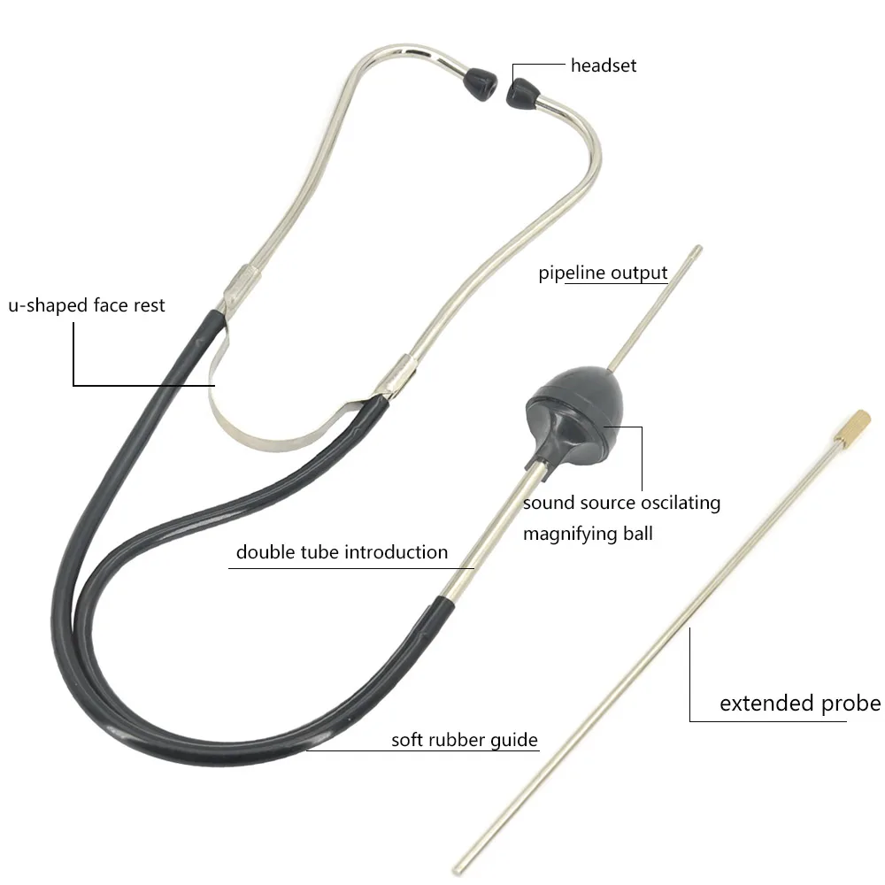 1. Стетоскоп для механики изготовлен из сверхмощных виниловых труб и пластмассовых концов ABS. Прочность и долговечность. 2 металлических зонда, легкий доступ в труднодоступных местах. Обеспечивает быстрый и легкий способ найти проблемы в подшипниках двигателей и других движущихся частях.
