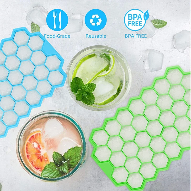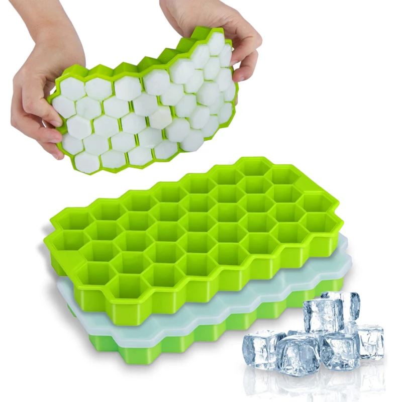 Обновленная форма для кубиков льда, 2 упаковки силиконовых гибких лотков для кубиков льда с крышкой, 74 кубика лотка для льда для охлажденных напитков, виски и коктейлей, Штабелируемая Гибкая безопасная машина для кубиков льда