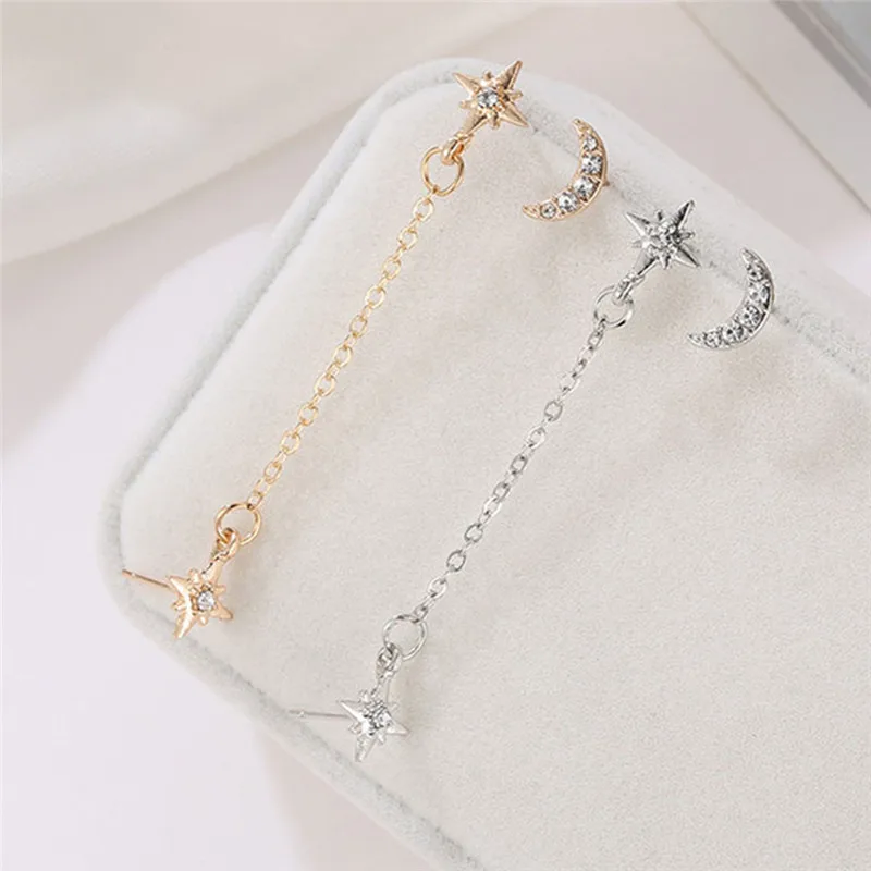 Женские асимметричные серьги-гвоздики с цепочкой в виде Луны, серьги-гвоздики, вечерние ювелирные изделия 2020, золотой цвет, правильной геометрической формы, модный сплав