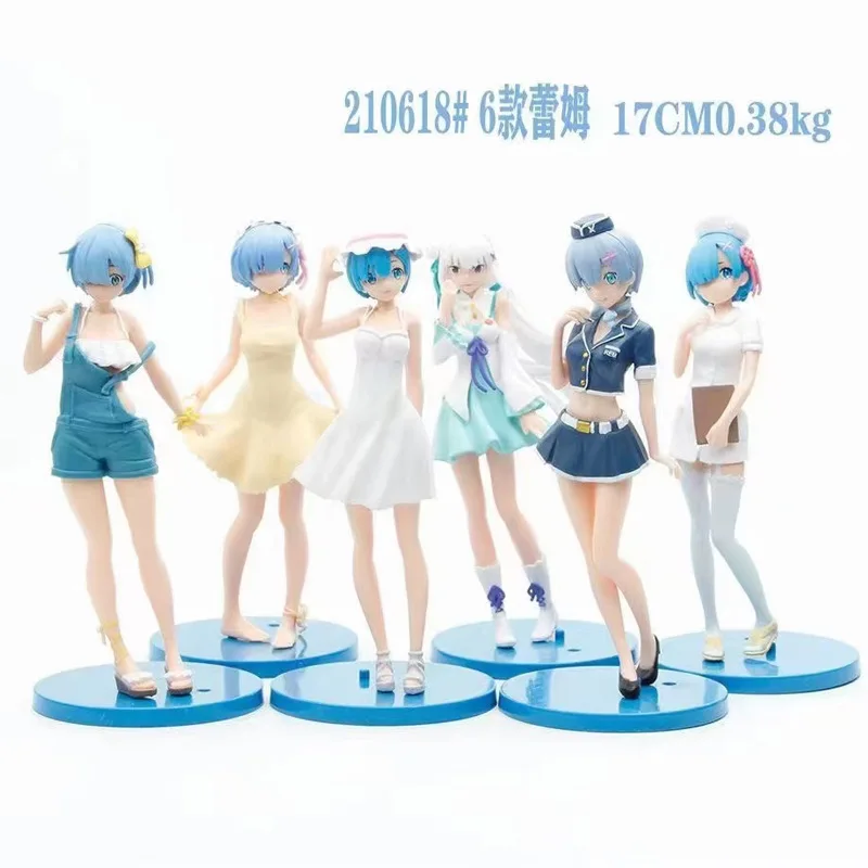 6 шт. Новый 17 см Re:Life In A Different World от Zero Rem аниме фигурку Купальник Ремень деним ПВХ Коллекция Модель Куклы Игрушки