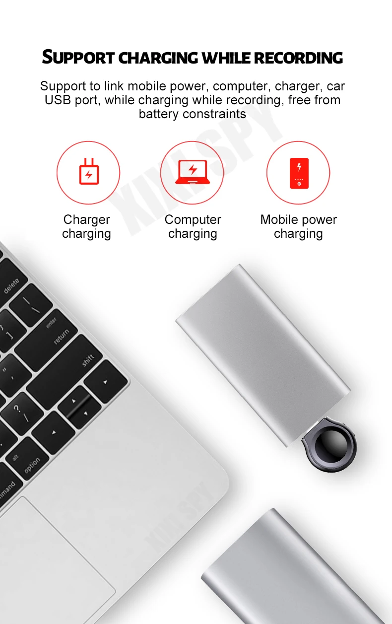 Support to link mobile power, computer, charger, car USB port, while charging while recording, free from battery constraints